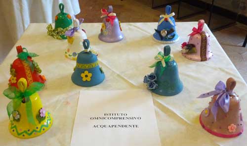 Nella categoria delle campanelle realizzate in materiali vari per gli adulti si è classificata al primo posto Silvia Pennese con l’opera in legno “per l’utilizzo di materiali naturali, sapientemente composti, anche se si sottolinea l’introduzione di materiale estraneo non idoneo alla composizione”; al secondo posto la Scuola di Ricamo di Acquapendente “per la composizione raffinata sia nella realizzazione che nei colori”.