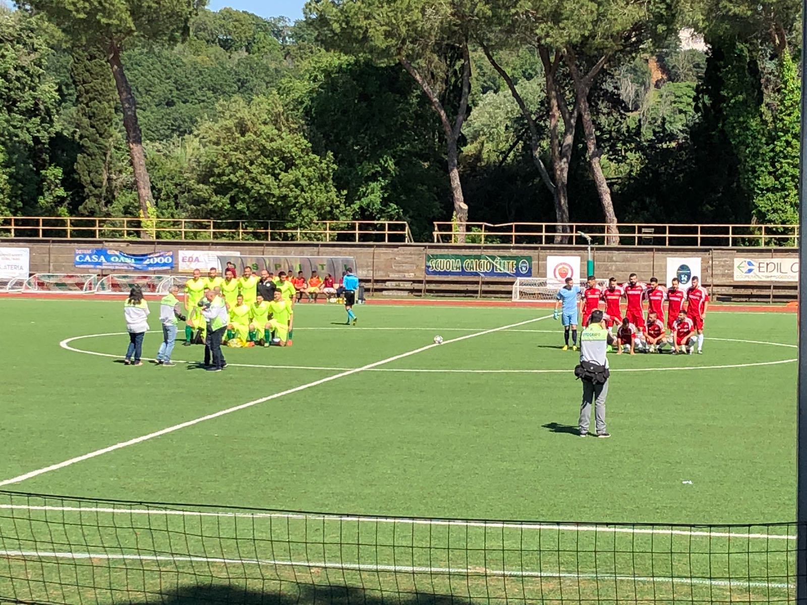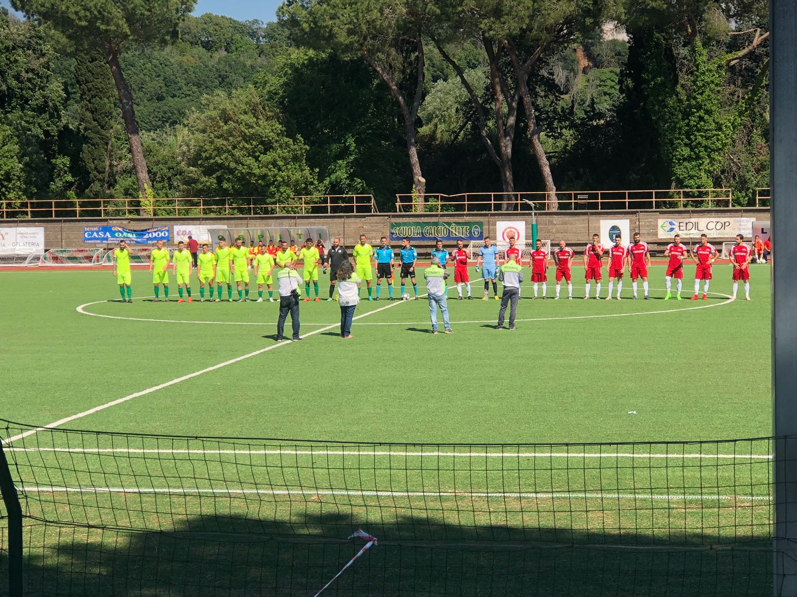 I romani erano passati in vantaggio con Marzi attorno al decimo del primo tempo: sfortunato, nell’occasione, il Montalto, con una deviazione fatale che batte Rosciani e segna l’1 a 0. Ma la reazione è immediata: al ventesimo, infatti, è già 1 a 1, con Lucci che – servito da Vittorini – trova il pari per il Montalto.