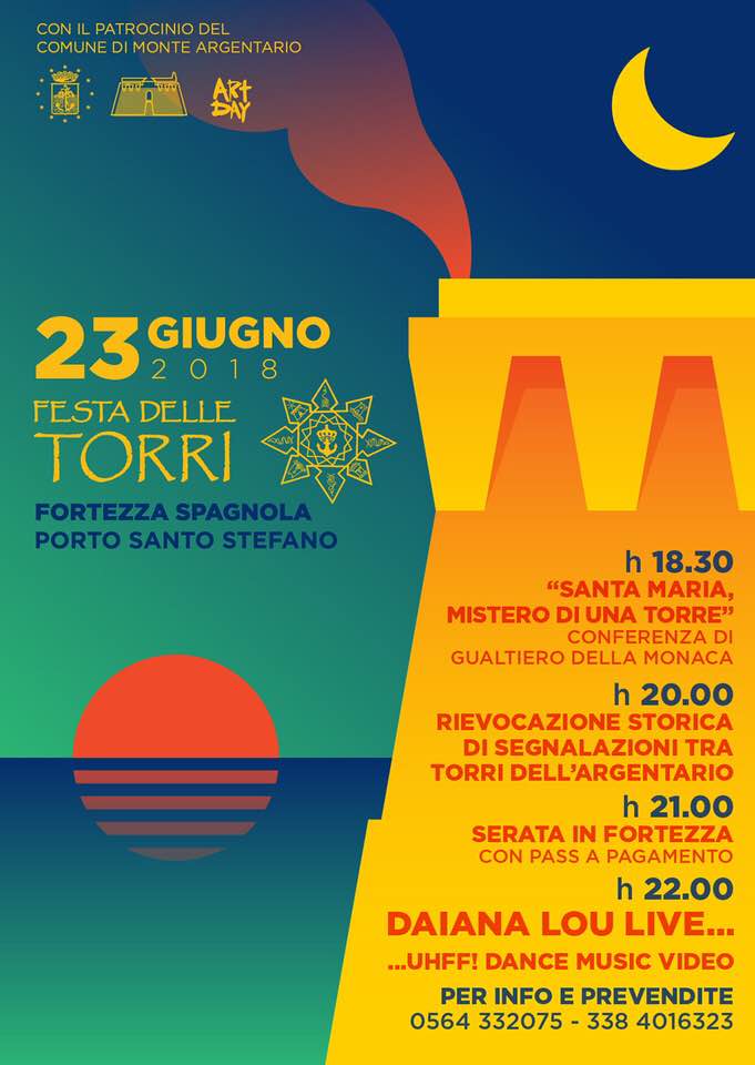 Manifestazione ormai tradizionale e di grande valore storico, turistico e culturale, torna in questo inizio d’estate, Festa delle Torri che, tra conferenze, rievocazioni ed intrattenimenti, contribuisce a far conoscere le numerose fortificazioni di cui dispone l’Argentario.
