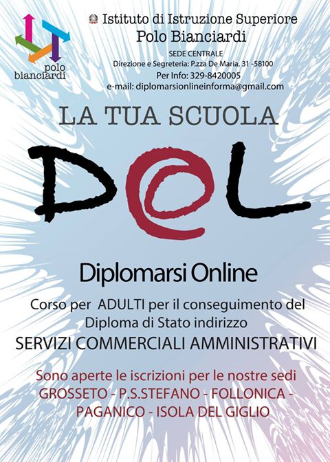 Le  lezioni, come noto, si tengono sia nella aule della scuola media di Porto Ercole che in quelle della scuola elementare di Porto Santo Stefano, condotte da insegnanti specializzati nelle diverse materie. Possono essere anche seguite da casa, attraverso una apposita piattaforma internet. In breve tempo – due o tre anni – si consegue il diploma di Stato di tecnico dei servizi commerciali e amministrativi e dalle statistiche effettuate finora è emerso che una altissima percentuale di diplomati con questo progetto ha trovato una collocazione lavorativa. Per ulteriori informazioni ed iscrizioni: email diplomarsionlineinforma@gmail.com,  tel. 329/8420005.