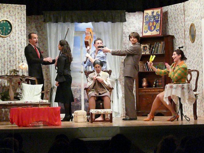 La rappresentazione propone una trama caratterizzata da equivoci e situazioni incalzanti ambientate nella casa di Shirley e Gilbert, interpretati da Irene e Mario Malinverno. Accanto a loro, salgono sul palco Ilaria Bravi nel ruolo dell’amica di famiglia, Alessandro Bettazzi come istruttore di squash coinvolto in una cena clandestina, Fabio Morganti nel ruolo dell’amante romantico e Lucy Greco come hostess della Lufthansa. Il ritmo sostenuto degli ingressi, la nebbia e gli intrecci contribuiscono a costruire una sequenza di malintesi che accompagna i personaggi fino alla confusa mattina successiva.
