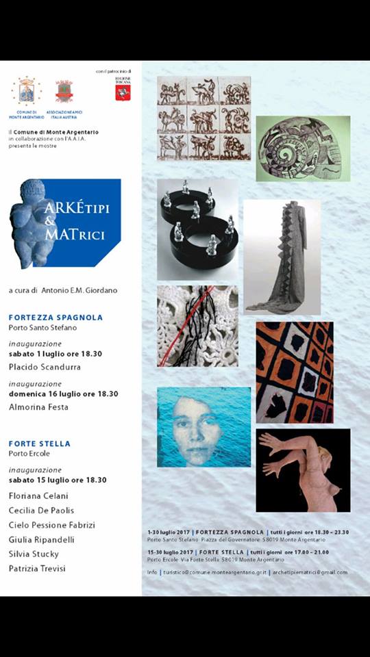 Seconda mostra, nei locali della Fortezza Spagnola di Porto Santo Stefano, della rassegna “Arkètipi & Matrici”, realizzata dal Comune di Monte Argentario con l’Associazione Amici Italia Austria ed il patrocinio della Regione Toscana. Dopo Placido Scandurra, domenica 16 luglio 2017 alle ore 18.30, sarà inaugurata l’esposizione di Almorina Festa, figlia d’arte del maestro della Pop Art romana Tano Festa e della pittrice Emilia Emo. Almorina vanta due diplomi, al liceo artistico di Padova ed al Tower Hamlet’s College, e corsi di arte applicata e di fotografia e decorazioni, sia all’estero che in Italia. Dove, nel 2002, ha conseguito un terzo diploma alla Scuola di Arti Ornamentali nel corso di design e pittura su tessuto.