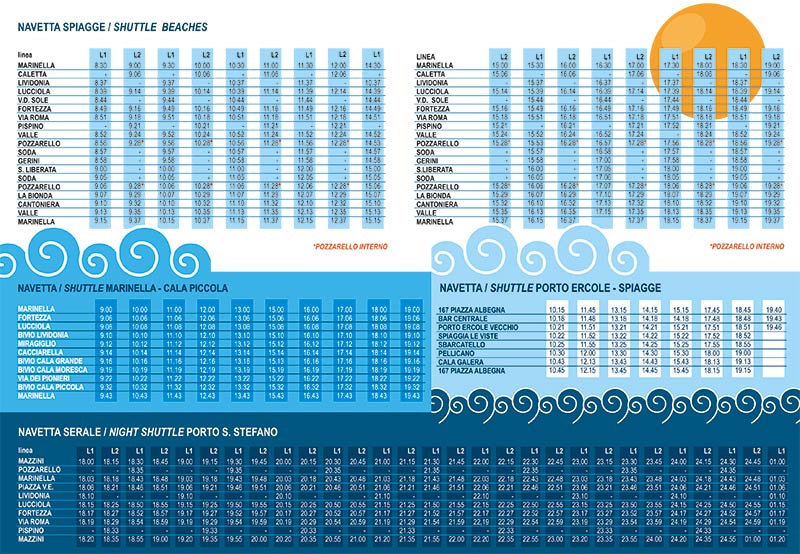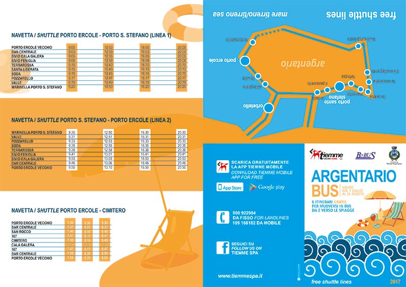 Il servizio già sperimentato con successo dal 2015 ha lo scopo disincentivare l’utilizzo di mezzi privati diretti verso i luoghi di balneazione. I bus transiteranno nei centri abitati, lungo la strada “Bretella” con direzione Pozzarello – Banchina Toscana e lungo la strada Panoramica e via dei Pioneri. Contemporaneamente prende il via il servizio di navetta serale a Porto S.Stefano e Pozzarello ed il collegamento diretto tra Porto S.Stefano e Porto Ercole. Il servizio è gratuito su tutto il territorio comunale e proseguirà fino al 31 agosto.