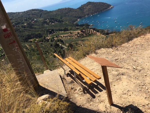 Sono in tutto sette le panchine che si possono incontrare percorrendo gli itinerari tracciati dal GAT : a Cala Grande (percorso 2), ai Ronconali (percorso 5), alla Croce del predicatore (percorsi 9 e 25), a Poggio fornacelle (percorsi 9 – 10 – 25 – 27), sul Piazzale delle antenne Rai (percorso 16), alla piana di Biagio – Annunziata (percorsi 16 e 17), lungo la via per Forte Filippo (percorso 26).