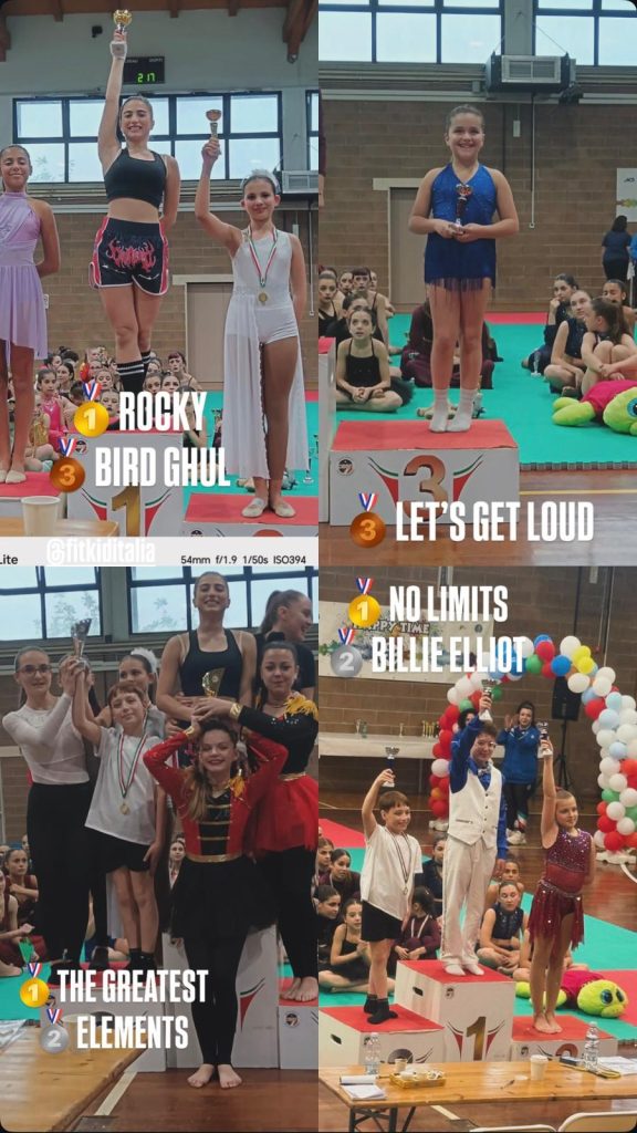 Medaglie d’oro per i gruppi “The last survivor” e “Soda Pop”, oltre che per le coreografie “Arrival of the bird”, “Inferno XIII canto” e “The greatest”. Ottimi risultati anche nelle prove individuali, con primi posti per “Berghain”, “Sweet dreams”, “Iron Man”, “Rasputin”, “Harry Potter”, “Run boy run”, “Stay”, “Rocky” e “No limits”.