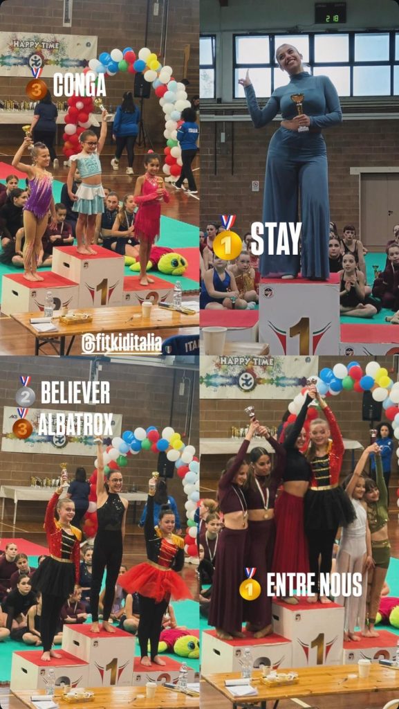 Successi anche nei duo, con le performance “Entre Nous” e “Green Power”. Completano il medagliere gli argenti per il gruppo “Elements” e per gli individuali “Billie Elliot” e “Believer”, oltre ai bronzi conquistati da “Let’s get loud”, “Bird ghul”, “Albatrox” e “Conga”. Sfiorano il podio Chiara Baldassari ed Elettra Lucchetti.