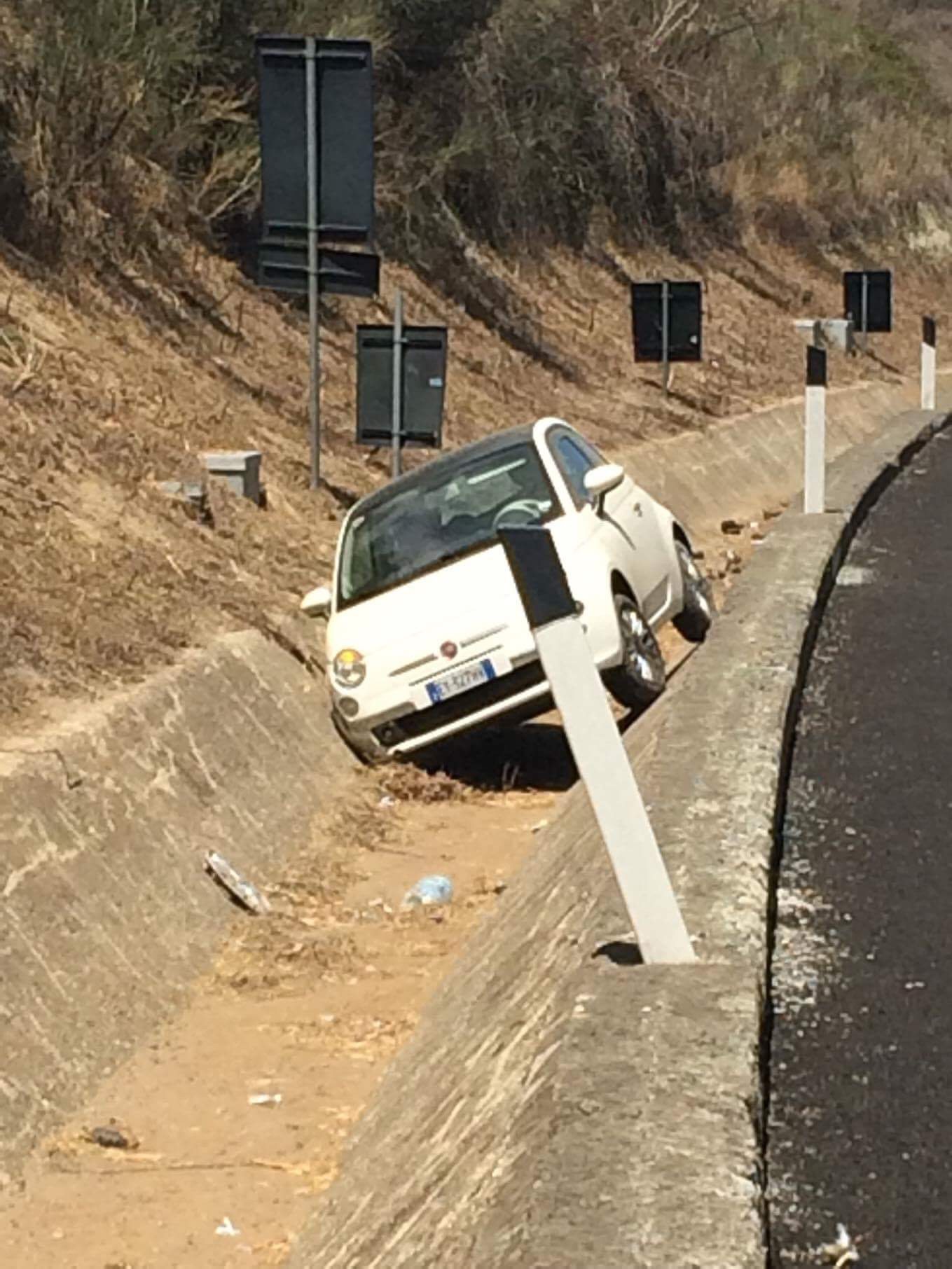 Una Fiat 500 è uscita dalla sede stradale, finendo la propria corsa sulla forma a bordo carreggiata: trasportata in ospedale per accertamenti la conducente, anche se non appariva aver subito conseguenze fisiche.