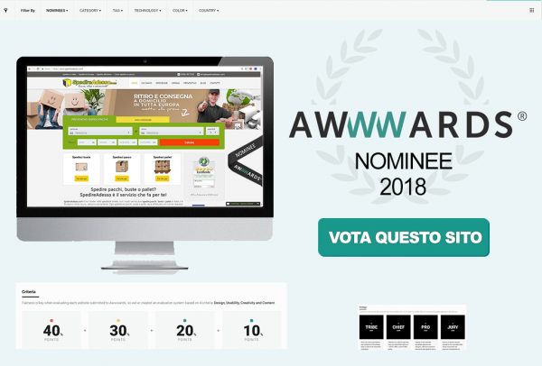 Arriva direttamente dall’azienda SpedireAdesso.com la notizia con cui annuncia, con orgoglio, di aver ricevuto per la prima volta la nomination agli Awwwards 2018. Questo importante riconoscimento può essere paragonato, per prestigio, ai famosi Academy Awards assegnati alle arti maggiori. Per potersi aggiudicare l’ambito riconoscimento, tuttavia, SpedireAdesso.com sarà valutato da una commissione di esperti e dovrà ricevere il maggior numero di voti possibili da parte degli utenti del web. Le votazioni si terranno fino all’11 aprile e riguarderanno quattro aspetti fondamentali che caratterizzano un sito.