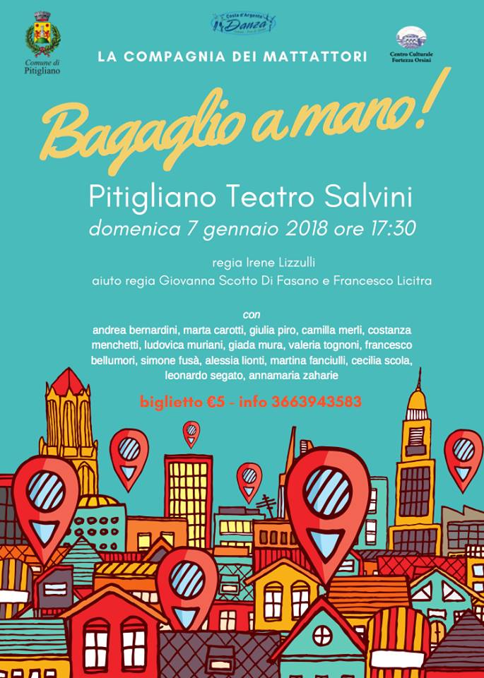 La compagnia dei Mattattori presenta “Bagaglio a mano!”, laboratorio teatrale in viaggio, in programma domenica 7 gennaio, alle 17 e 30, al Teatro Salvini di Pitigliano.