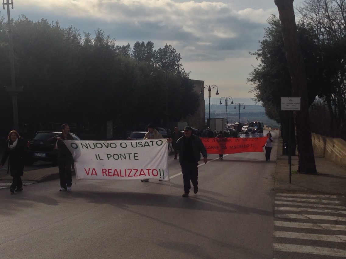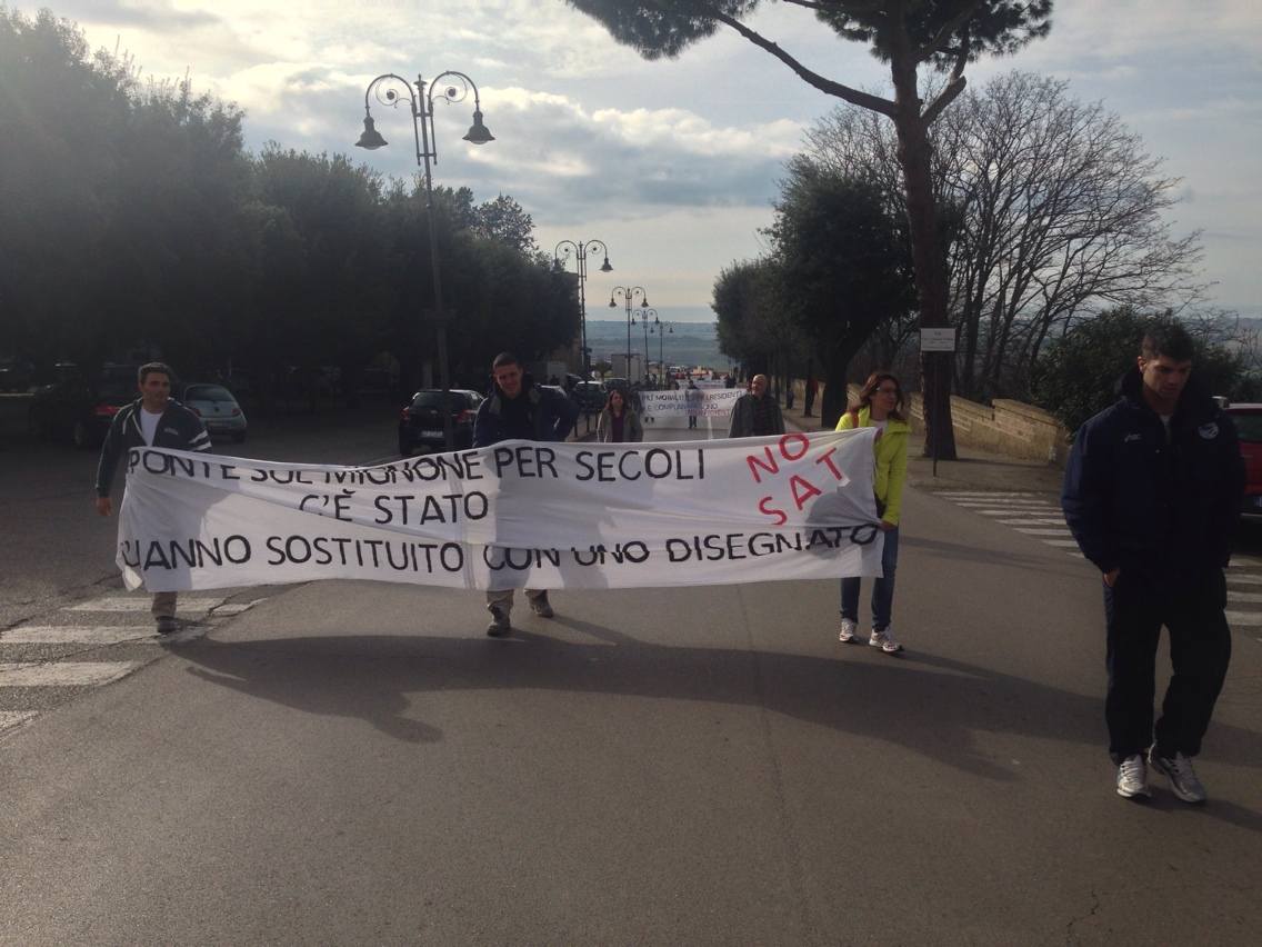 I manifestanti chiedono che SAT renda pubblico un crono-programma dei lavori che interesseranno tutte le zone coinvolte dal tracciato autostradale e che tale programma contempli la realizzazione di idonee strade complanari di almeno tre metri per carreggiata adatte anche al transito dei mezzi agricoli ed il ripristino ed adeguamento del vecchio ponte sul fiume Mignone – o, qualora non fosse possibile, che SAT ne realizzi uno sostitutivo, prima della realizzazione dell’autostrada e comunque prima della chiusura di tutti gli accessi in prossimità dell’attuale ponte (strada vicinale Melledra, in località Farnesiana, località Pian Boaro, località Pantano di sopra, ecc).