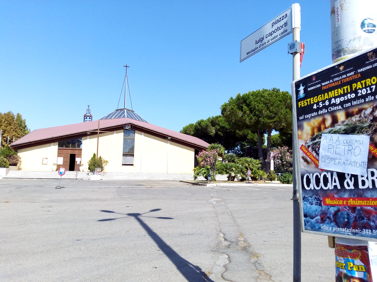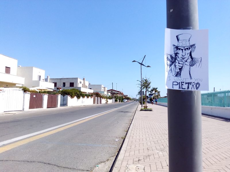 Il primo “attacco” è avvenuto lunedì 7 agosto, mentre il secondo, più capillare, é datato 11 agosto: il Lido di Tarquinia è stato letteralmente riempito di cartelli inneggianti a tale “Pietro”, poi scomparsi dopo qualche ora.
