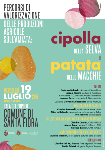 Due antiche cultivar dell’Amiata protagoniste di percorsi di valorizzazione: la cipolla della Selva, nel comune di Santa Fiora e la patata delle Macchie nel Comune di Arcidosso. E’ alto l’interesse che si sta creando attorno a questi due alimenti che in passato erano la base alimentare della montagna, insieme alla castagna. Nel corso del convegno che si terrà a Santa Fiora mercoledì 19 luglio, alle 10, nella sala del Popolo del Comune, interverranno i principali promotori di questi percorsi di valorizzazione, pensati anche per creare nuove opportunità economiche e di sviluppo per le comunità locali, facendo leva sul legame tra alimento e territorio.