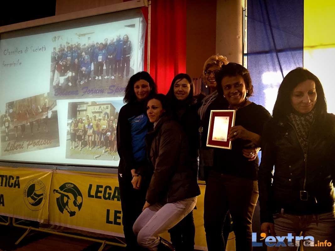 A far da aperitivo, tutta una serie di eventi in pista, con impegnati sia i bambini – numerosissimi, da 4 ai 12 anni – sia gli amanti del running, protagonisti di un 5.000 a metà tra allenamento ed agonismo. Poi il ritrovo in palestra, scenario di una cerimonia che fa rivedere i volti che ogni domenica assiepano le strade ed i campi gara della Tuscia e non solo. Passerelle speciali per Antonella Bellitto e Roberto Paoli, vincitori tra i Top Runner, ma sul podio ed in premiazione sono saliti in tantissimi. Menzione speciale per le società: vittorie nella graduatoria maschile per La Zona Olimpica ed in quella femminile per il Bolsena Forum Sport.