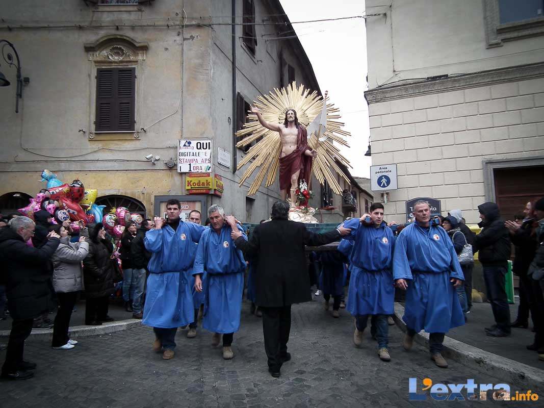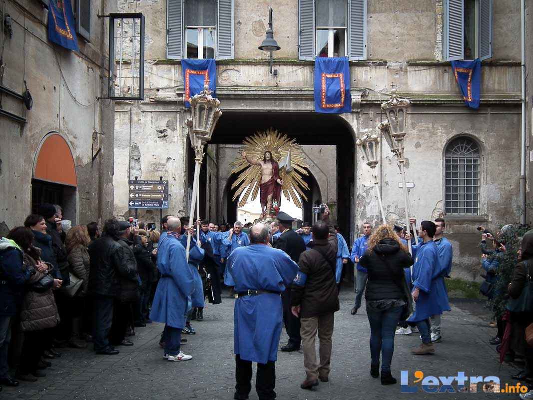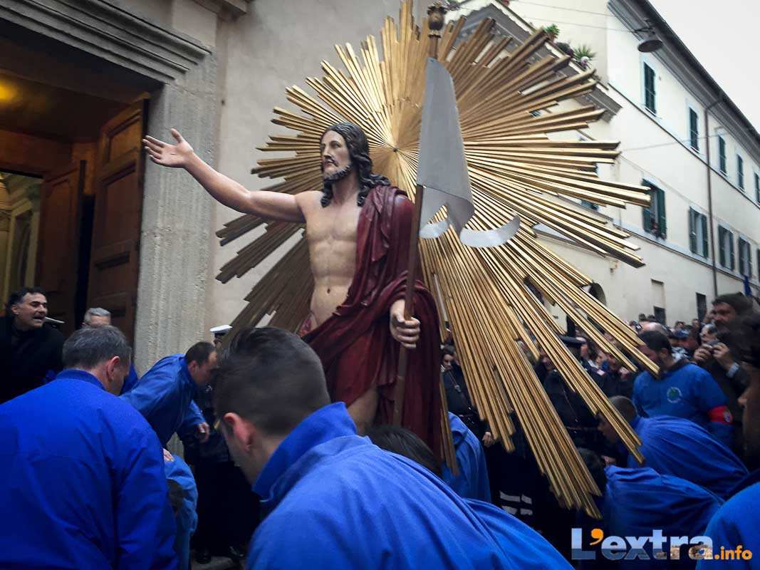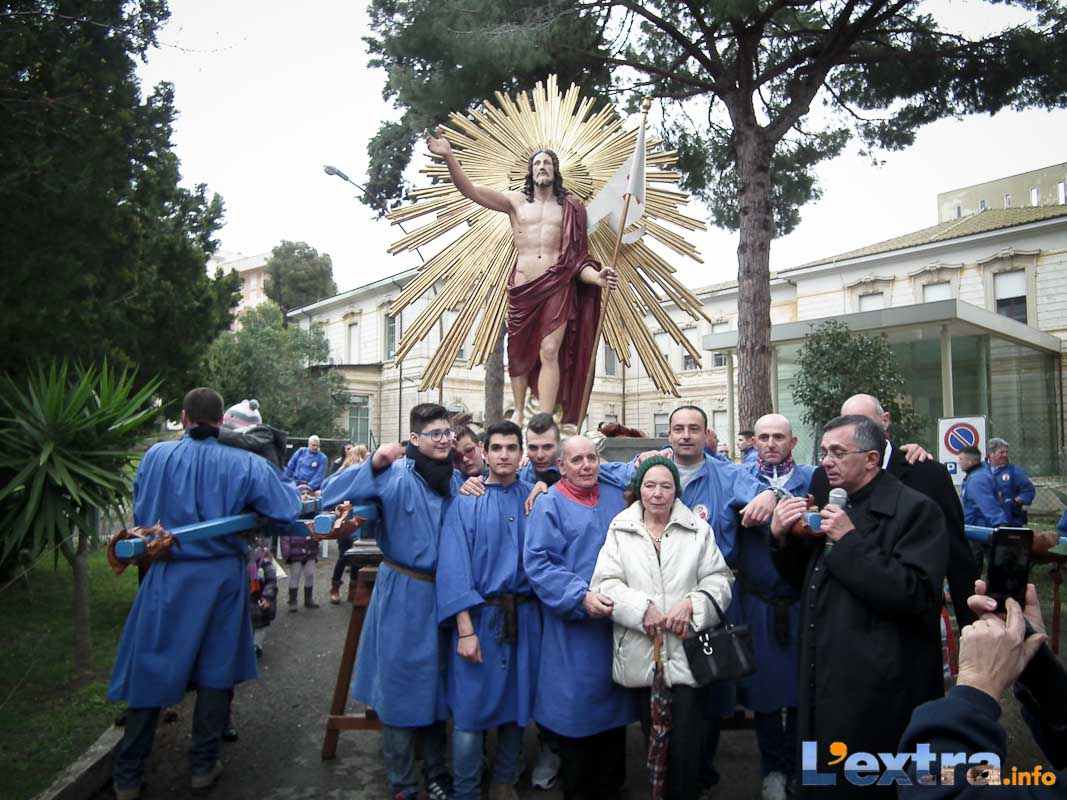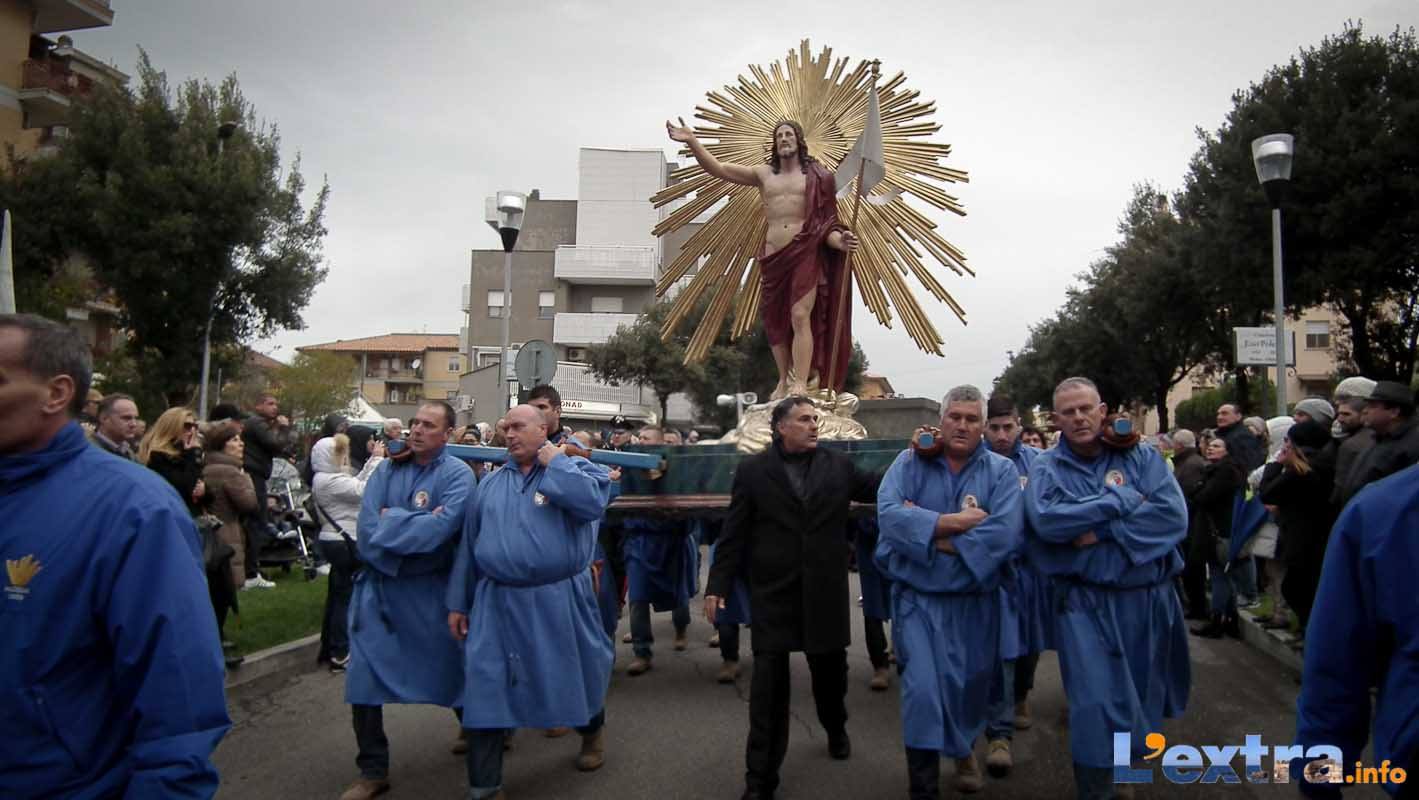 Il Cristo Risorto anche oggi, 5 aprile 2015, in una giornata pessima dal punto di vista del maltempo, ha emozionato Tarquinia lunga la sua corsa: fermatasi, per la parentesi necessaria alla processione, la pioggia, è stato il vento a creare qualche disagio, soprattutto ai portatori dei tronchi. Ed è stato splendido, a tal proposito, il sostegno dei tanti spettatori assiepati lungo il percorso, che hanno sospinto ed applaudito i protagonisti soprattutto nei momenti di difficoltà.
