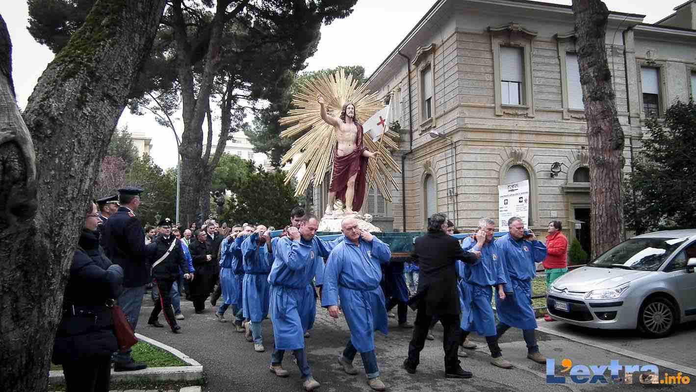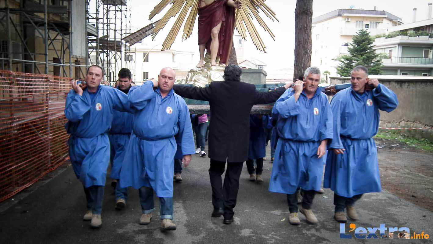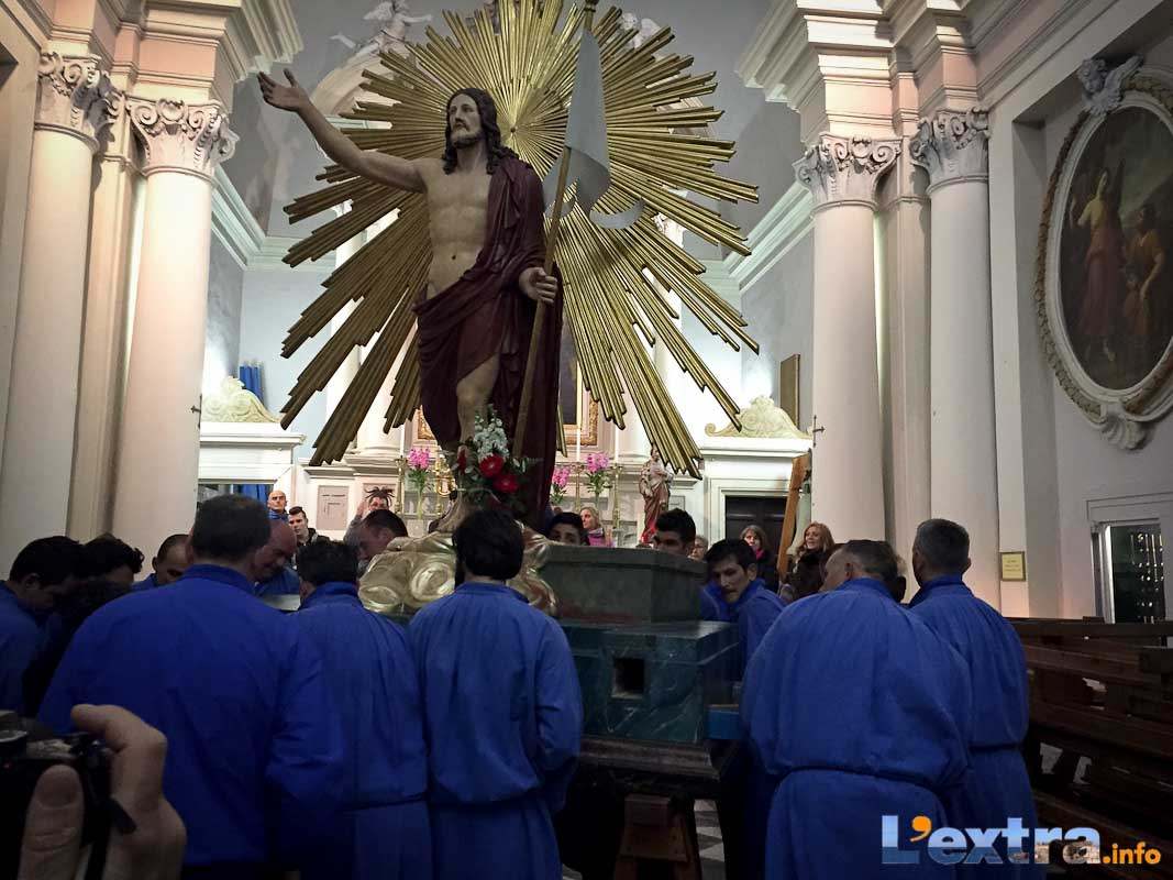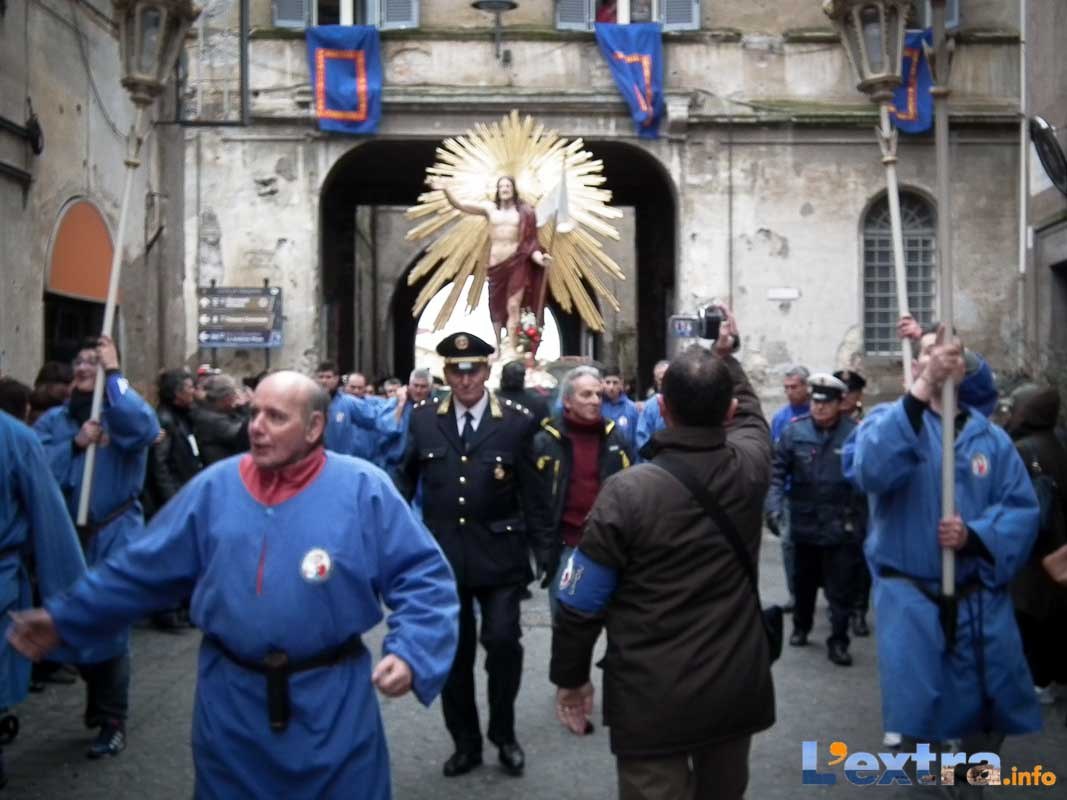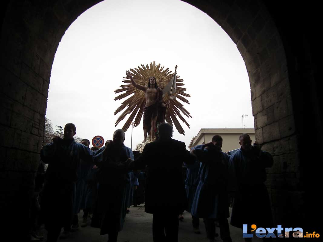 Il Cristo Risorto anche oggi, 5 aprile 2015, in una giornata pessima dal punto di vista del maltempo, ha emozionato Tarquinia lunga la sua corsa: fermatasi, per la parentesi necessaria alla processione, la pioggia, è stato il vento a creare qualche disagio, soprattutto ai portatori dei tronchi. Ed è stato splendido, a tal proposito, il sostegno dei tanti spettatori assiepati lungo il percorso, che hanno sospinto ed applaudito i protagonisti soprattutto nei momenti di difficoltà.