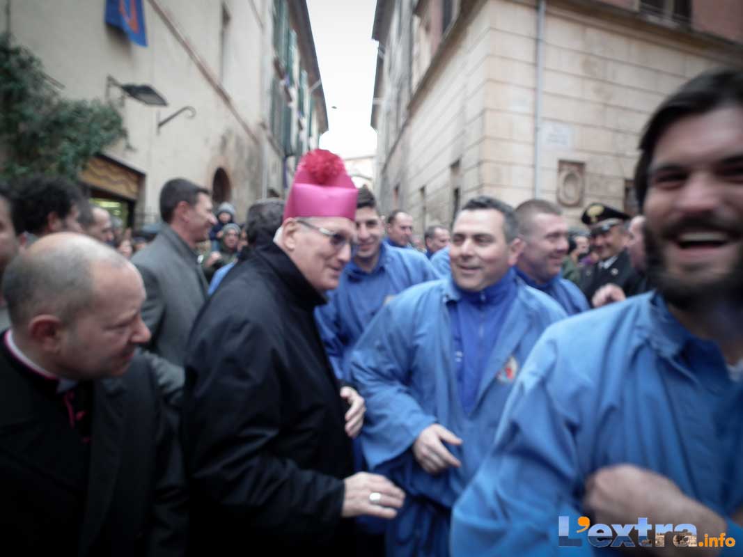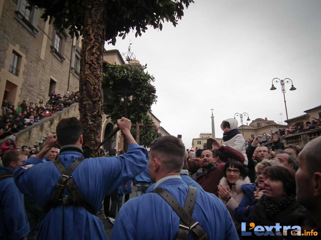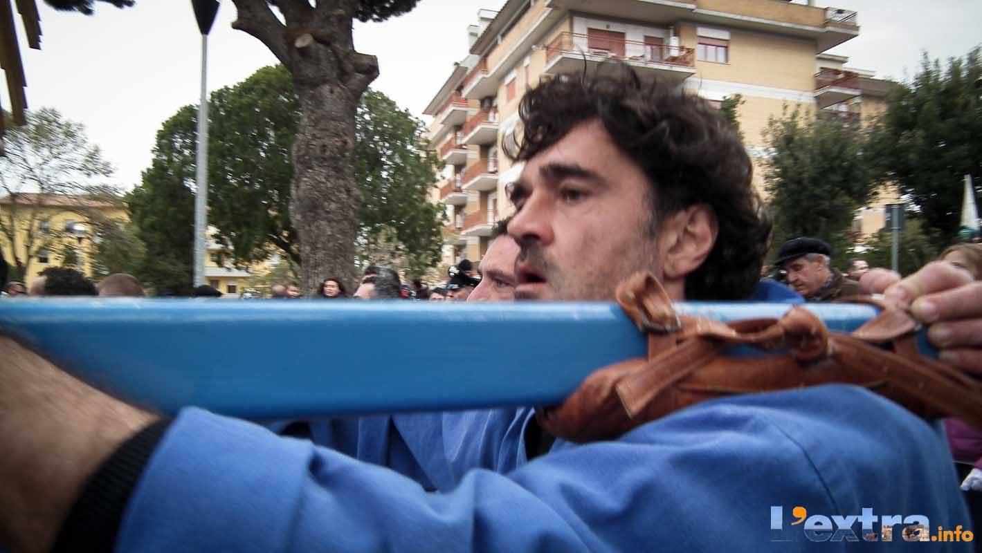 “È una fatica, ma ne vale la pena, ne varrà sempre la pena”: questo hanno raccontato in molti, al termine del percorso, appena lasciati tronchi e macchina a San Giuseppe. Una fatica vissuta tra la folla – forse meno numerosa del solito, a causa del clima – al ritmo della marcia della banda Setaccioli e di fronte a tanti smartphone che ne hanno immortalato i momenti, riproponendoli subito sui social network, da stasera pieni di spezzoni dello spettacolo del Cristo che corre.