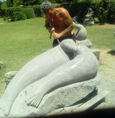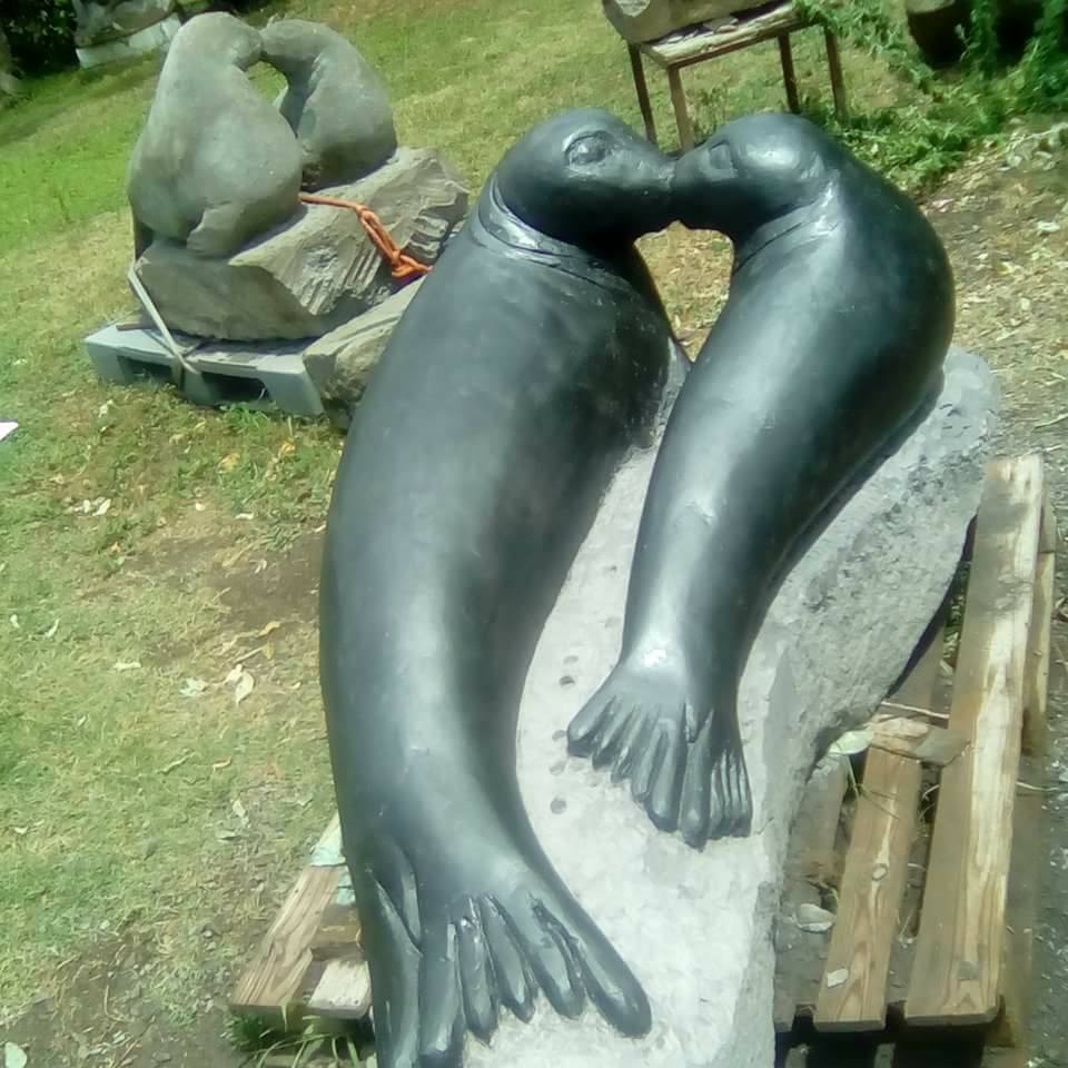 Una mamma di foca monaca che bacia e protegge il suo cucciolo: è l’immagine simbolica – riprodotta scolpendo la roccia – scelta da Giulio Cosimi Bagada come proprio emblema nei confronti della sensibilizzazione dell’opinione pubblica sull’estinzione della foca nel Mediterraneo.