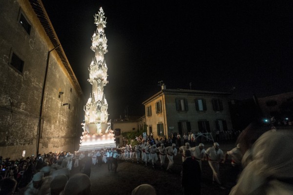Il risultato è questo volume che raccoglie un’esperienza di apprendimento, una pratica creativa, un evento religioso e socio-antropologico centrale per la Tuscia, la sua comunità e la città di Viterbo, con la sua vita intensa nei giorni di Santa Rosa. Il laboratorio fotografico nasce in effetti dal dialogo tra Fiorentino e alcuni studenti, da una ipotesi formulata tra generazioni a confronto, dall’urgenza di mettere insieme una dimensione teorico-culturale e una dimensione concreta, operativa, che fondi saperi e competenze difficilmente unite ma che nella fotografia trovano necessità e opportunità. L’esperienza del laboratorio, nata nel 2014 e aperta subito alla partecipazione di tutti gli studenti dell’Università della Tuscia, è stata estesa, nel giugno 2016, a un gruppo di ragazzi del Liceo Ruffini, in occasione del progetto di formazione scuola lavoro che poneva al centro la scoperta culturale ed empirica di quello che in apparenza potrebbe sembrare un mezzo di comunicazione figlio di un dio minore, appunto la fotografia.