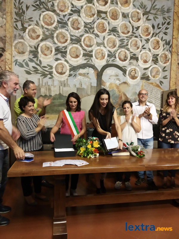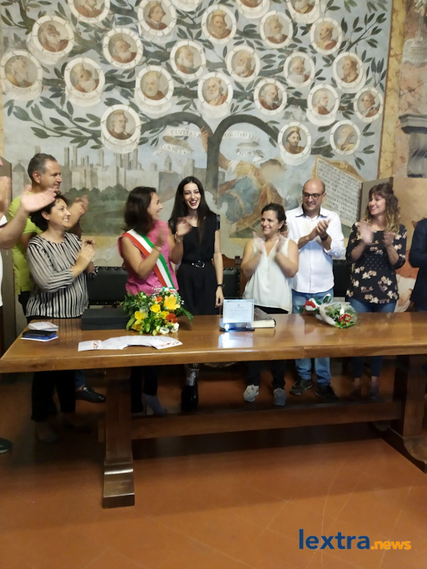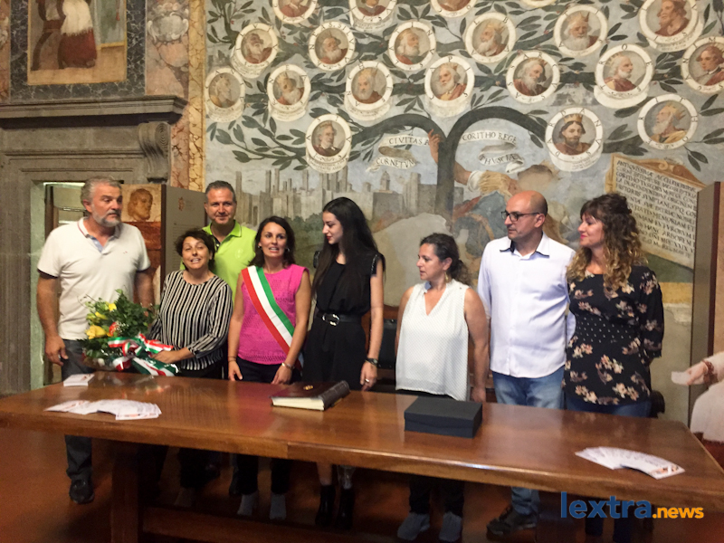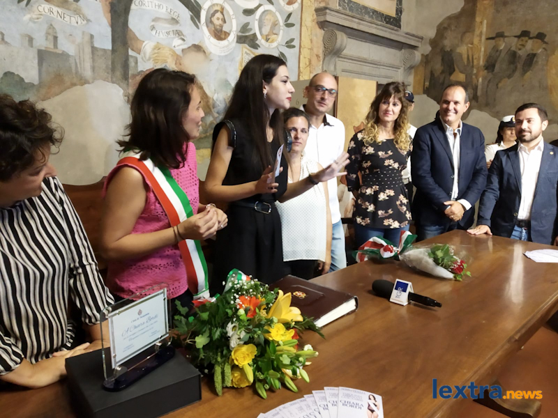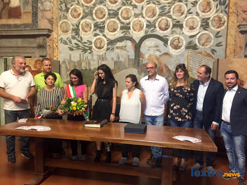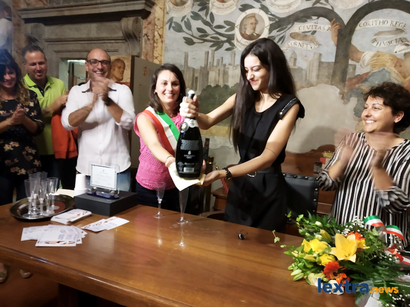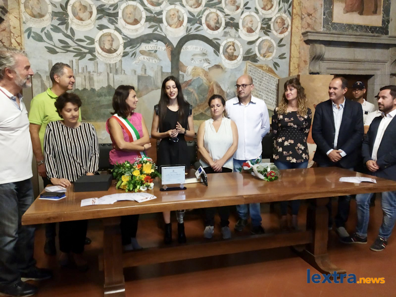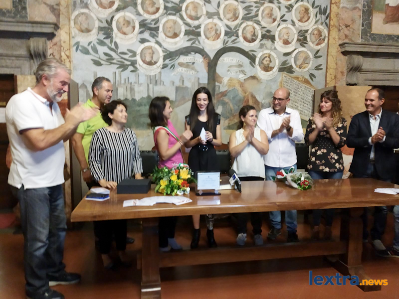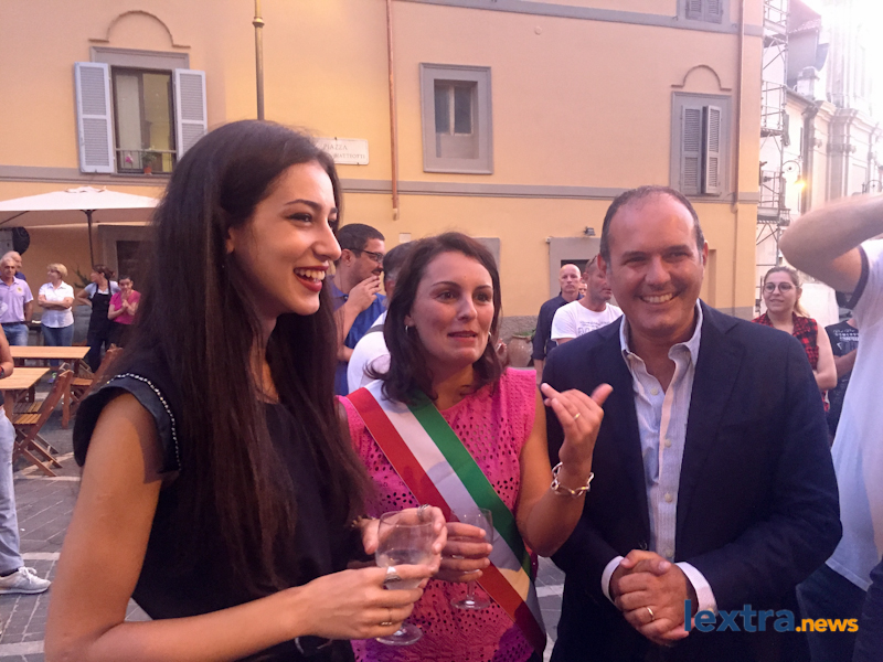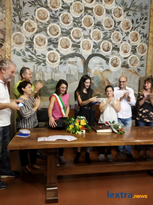 Giunta in cabriolet in piazza Matteotti, ad accoglierla ha trovato amici, parenti e concittadini felici di salutarla, oltre all’amministrazione comunale che l’ha omaggiata con una targa. Tanti palloncini bianchi, un brindisi poi tutti in sala degli affreschi per salutare la Miss, che ha parlato telefonicamente con il sindaco Mencarini e firmato il libro che riporta le dediche delle personalità che vengono ricevute al palazzo comunale.