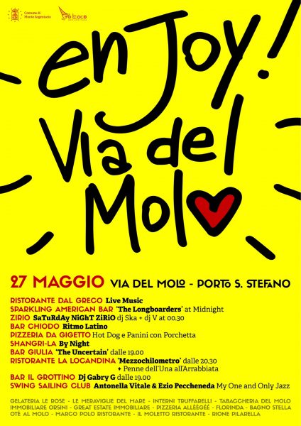 Una serata ed una notte a tutta vita su via del Molo a Porto Santo Stefano. Sarà quella di sabato 27 maggio 2017in occasione della quale la Pro Loco di Monte Argentario con il patrocinio del Comune ha promosso l’iniziativa Enjoy Via del Molo.