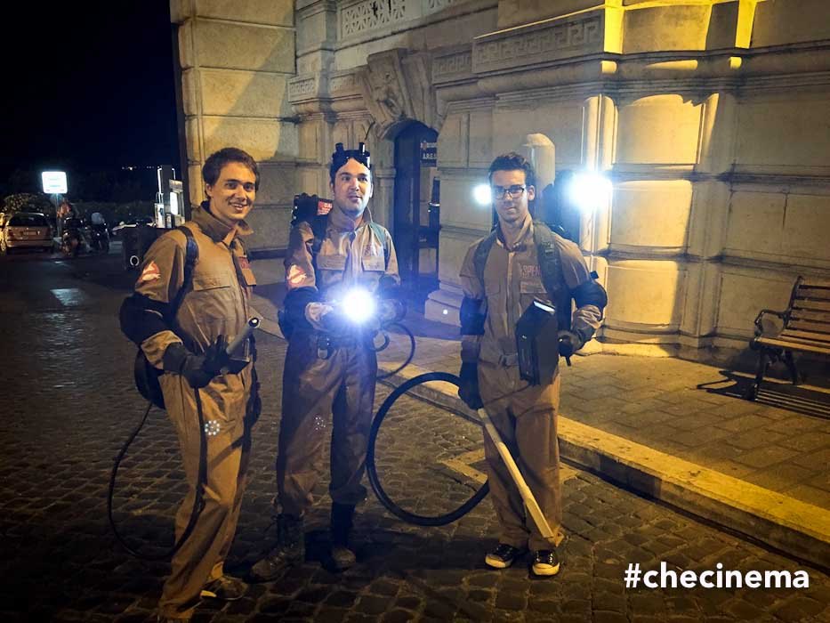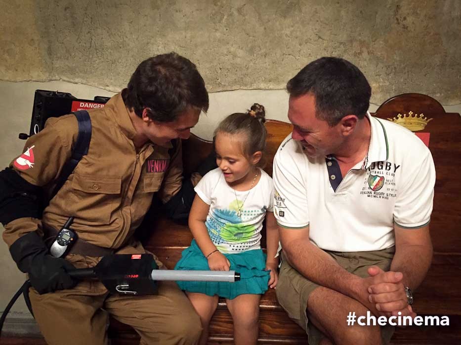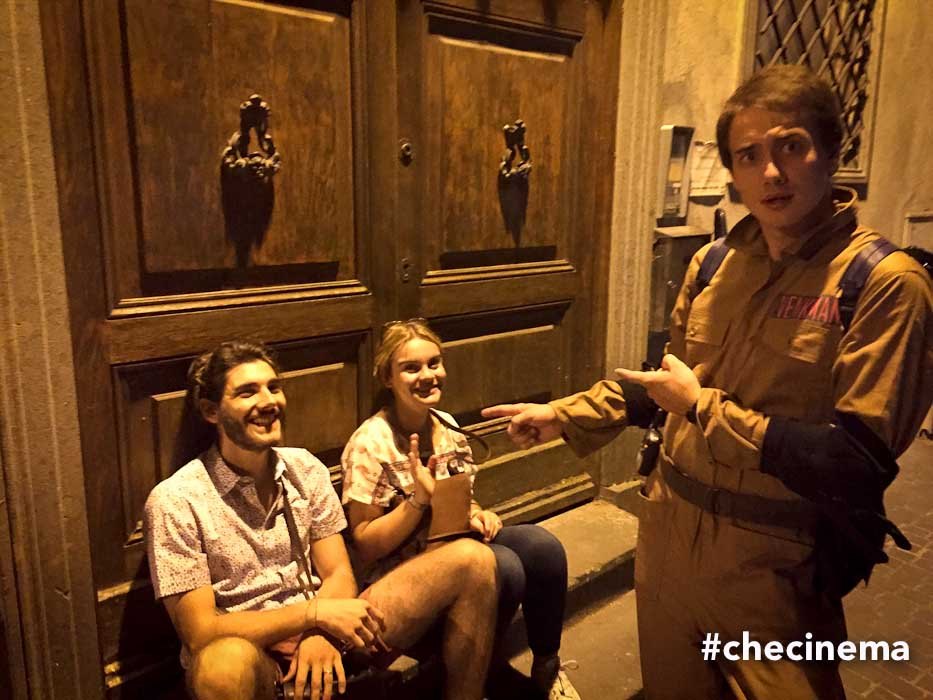 Missione compiuta: i tre acchiappa fantasmi hanno intrappolato lo spettro e disinfestato il palazzo, oltre a vari locali della cittadina dove sono stati accolti in un clima di festa.