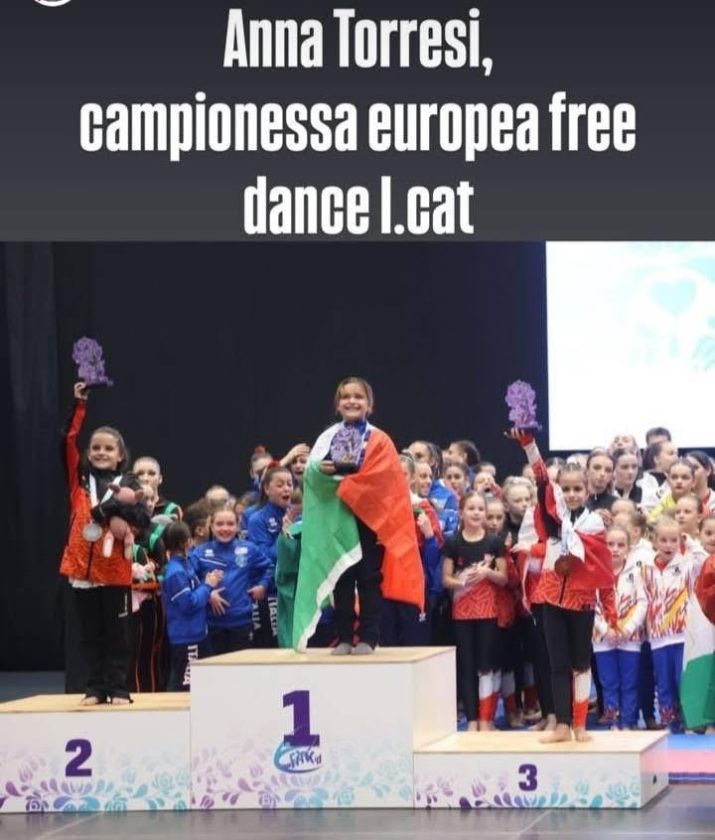 • Oro e titolo europeo nella cat. solo I per Anna Torresi, con la coreografia “Carrà”;