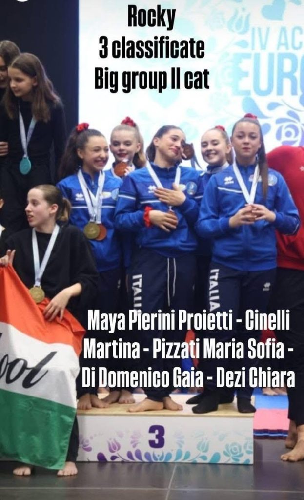 • Bronzo nella categoria Big Group II per la coreografia “Rocky” eseguita da Maya Pierini Proietti, Chiara Dezi, Martina Cinelli, Gaia Di Domenico e Maria Sofia Pizzati;