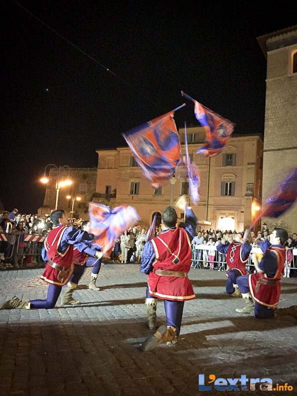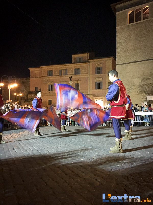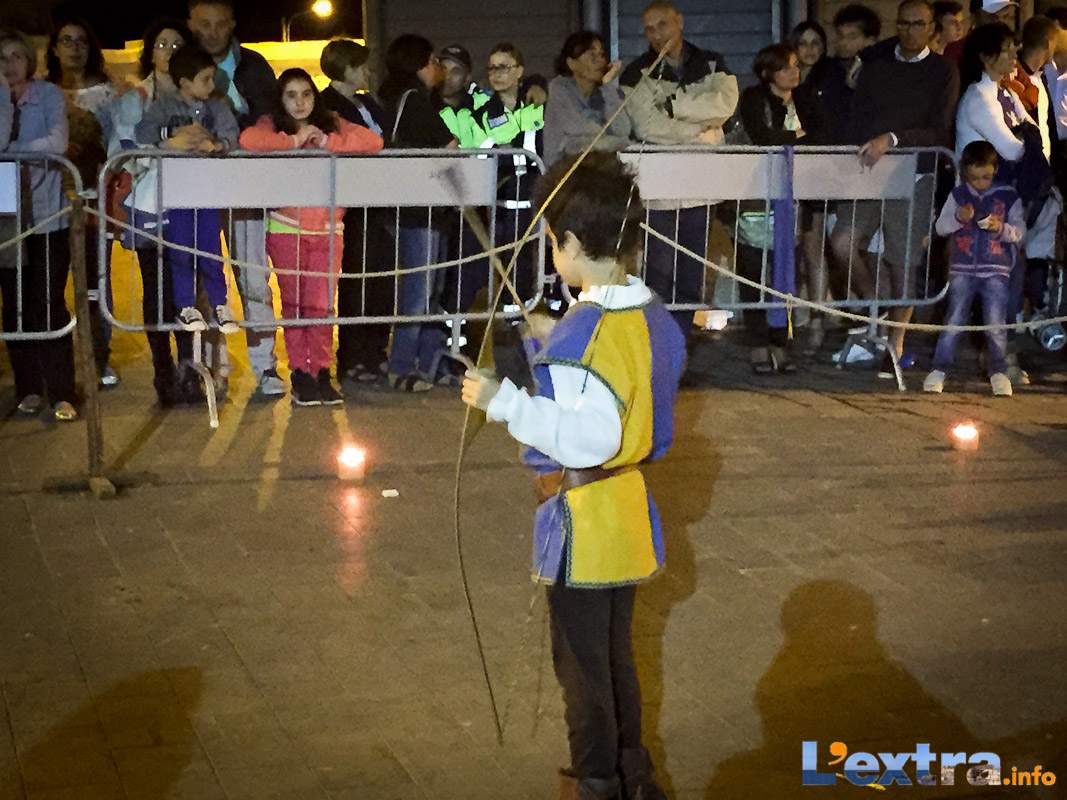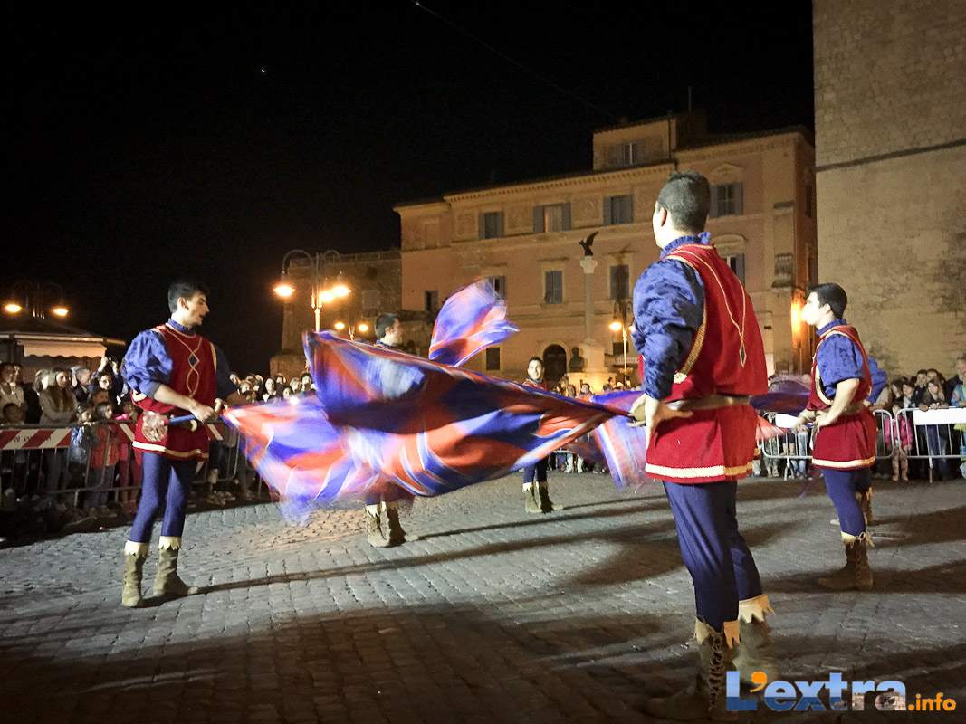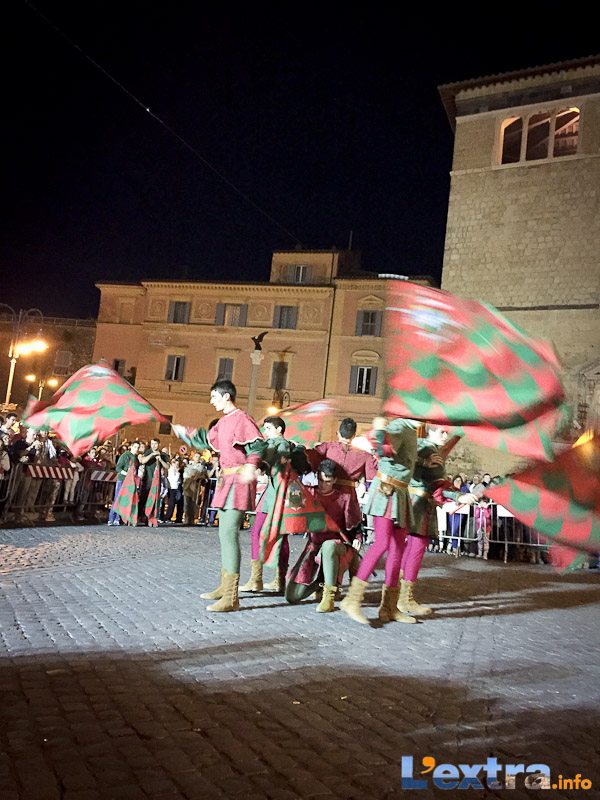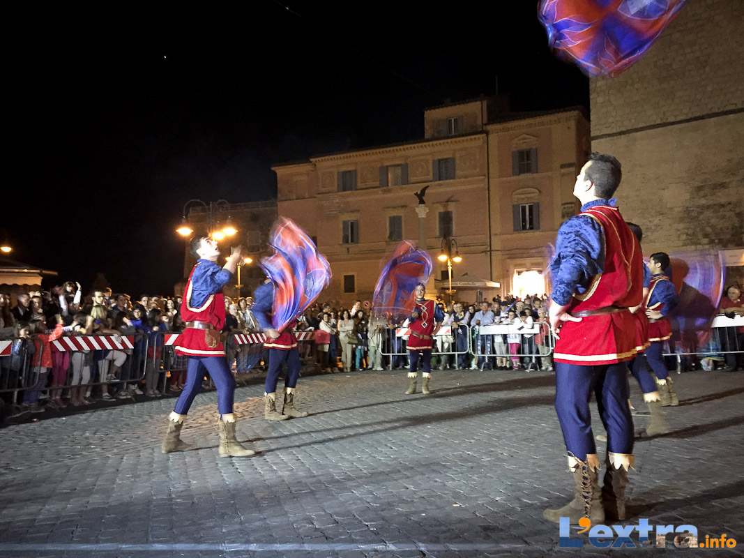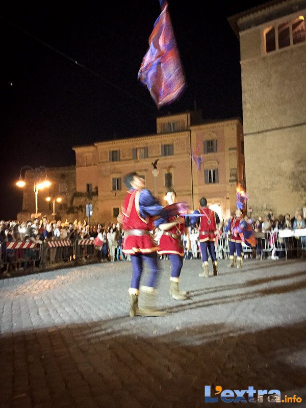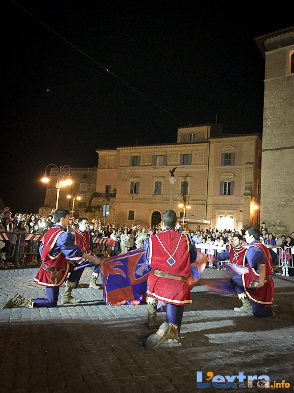 Bello e suggestivo anche il contest degli sbandieratori. Le Contrade del Palio di Allumiere ospiti nella piazza hanno dato spettacolo. Esibizione che ha visto prevalere la contrada della Nona, per insindacabile voto delle dame presenti. Volontà degli organizzatori è infatti quella di collaborare con giostre, palii e manifestazioni che hanno spirito comune. In quest’ottica gradita presenza anche quella del gruppo Arcieri Viterbiensis. Le frecce scoccate da madonne e messeri hanno determinato l’ordine di partenza del palio. Onore del Campo alla contrada di San Franceso, il sodalizio che ritorna in questo 2015.