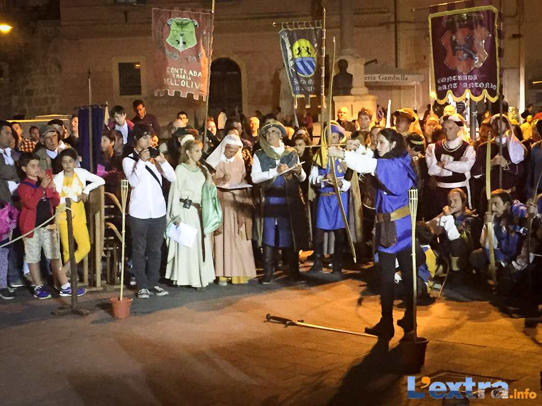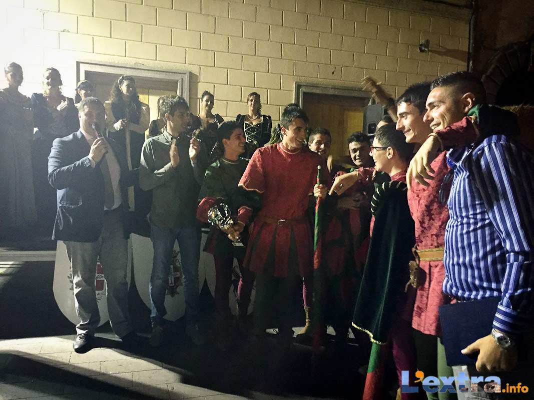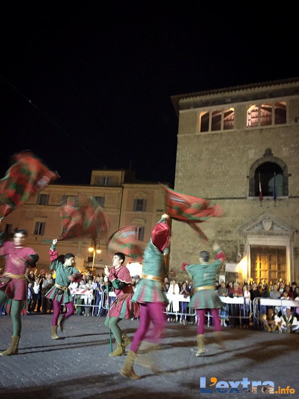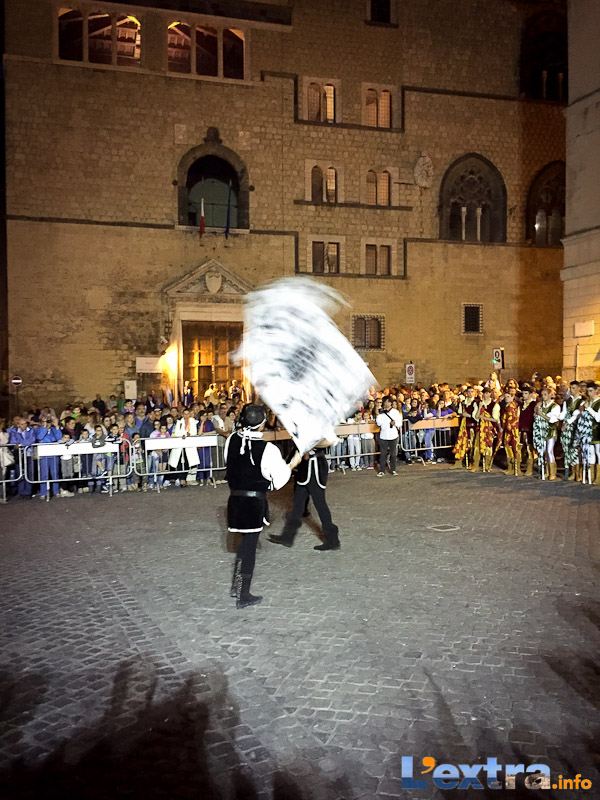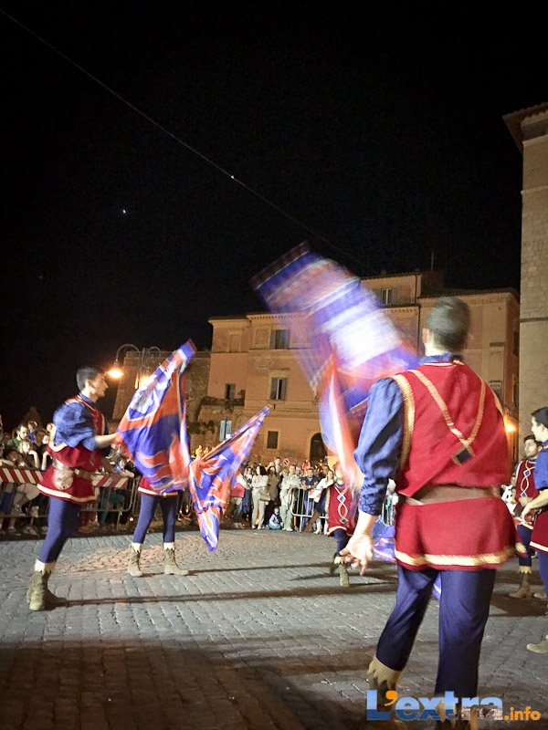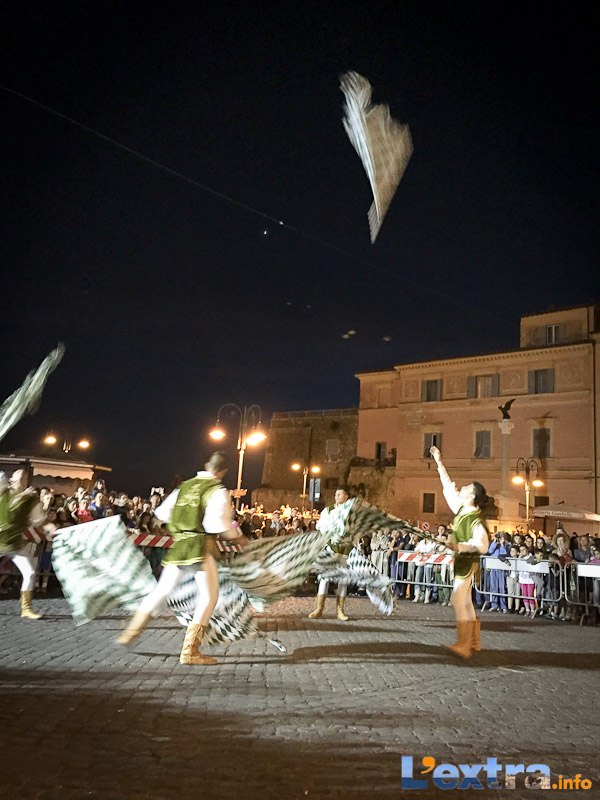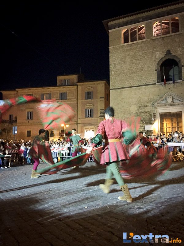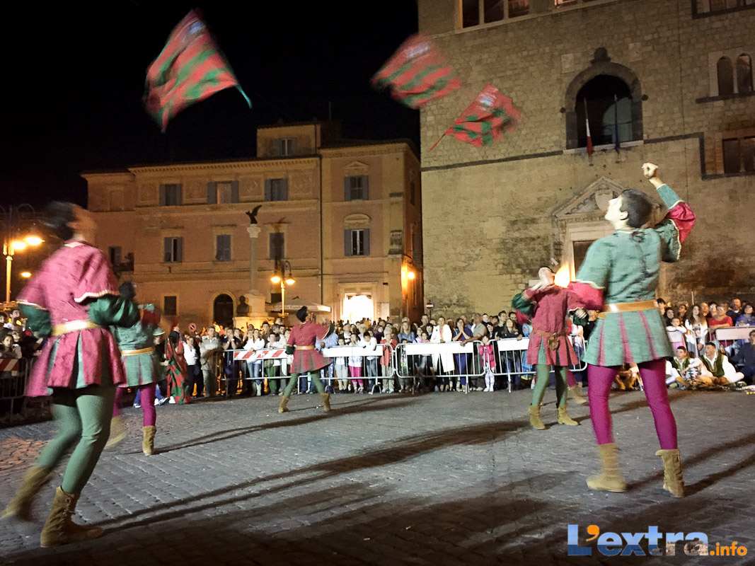 Bello e suggestivo anche il contest degli sbandieratori. Le Contrade del Palio di Allumiere ospiti nella piazza hanno dato spettacolo. Esibizione che ha visto prevalere la contrada della Nona, per insindacabile voto delle dame presenti. Volontà degli organizzatori è infatti quella di collaborare con giostre, palii e manifestazioni che hanno spirito comune. In quest’ottica gradita presenza anche quella del gruppo Arcieri Viterbiensis. Le frecce scoccate da madonne e messeri hanno determinato l’ordine di partenza del palio. Onore del Campo alla contrada di San Franceso, il sodalizio che ritorna in questo 2015.