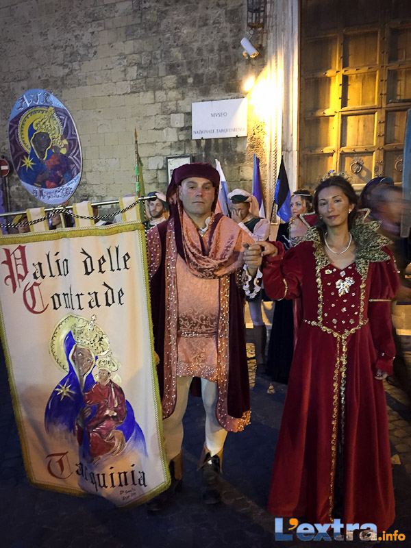 Rivive una tradizione storica della Città di Tarquinia, con la volontà di rimanere per sempre. Il campo gara certificato da apposita commissione garantisce la sicurezza di equidi e persone. Al termine della giostra il corteo tornerà a Piazza Cavour dove avverrà la consegna del Palio alle contrada vincitrice.