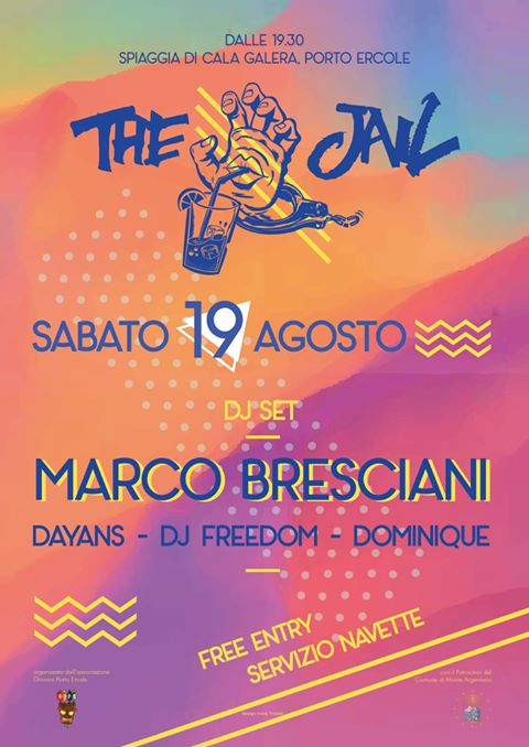 Tutti a ballare dalle ore 19.30 alle 4,00 sulla spiaggia di Cala Galera, sabato 19 agosto 2017. Torna infatti The Jail, l’evento che nel cuore dell’estate trasforma la spiaggia del porto turistico più celebre del Promontorio in una sorta di discoteca sotto le stelle. Il beach party più atteso della stagione è organizzato dal Gipe, Gruppo Giovani Porto Ercole che radunerà sulla spiaggia di Cala Galera i dj Marco Bresciani, Dayans b2b, Aby Merlan, dj Freedom e Dominique per mixare i successi che hanno fatto scatenare i ragazzi nei decenni passati, oltre a quelli del momento. A The Jail 2017 potranno partecipare tutti, anche perché ad ingresso gratuito e servito da una navetta che accompagnerà all’Argentario dai centri limitrofi, compreso Grosseto.
