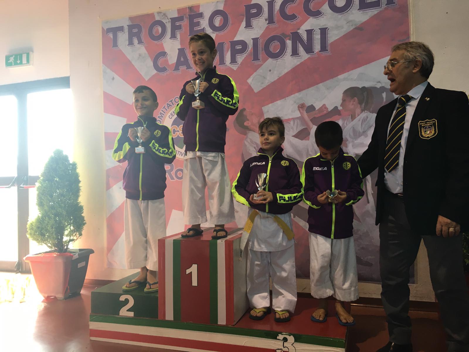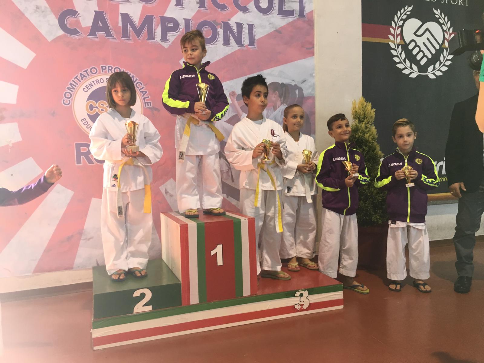 Karate Fatamorgana al 3° posto assoluto nella classifica per Società, grazie alle prestazioni degli atleti medagliati, e sono: Oro per DE GUIDI EMMA specialità Kata, CAPITTA MANUEL Oro specialità Percorso e Bronzo nel Kata, CARDIA RACHELE Oro Kata e 2 Argenti Palloncino e Squadra, PISTOLA GABRIEL 2 Ori Kata individuale e squadra e 2 Bronzi Percorso e Palloncino, 3 medaglie Oro sono per l’atleta REALI GABRIELE nelle specialità Percorso Palloncino e Kata a squadra e Bronzo Kata individuale.