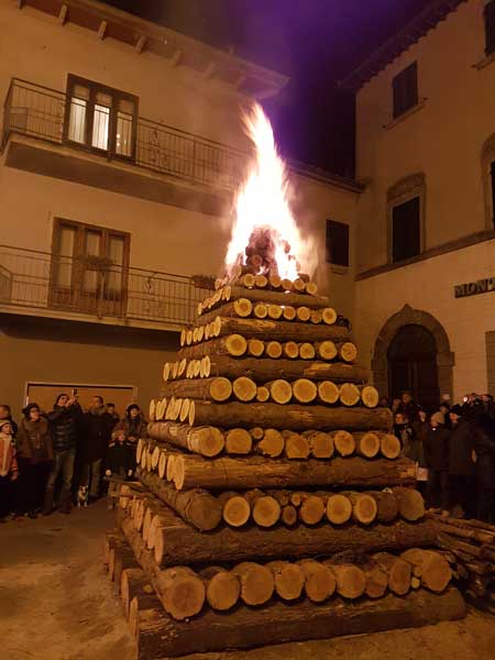 La Fiaccolata è qualcosa che travalica lo spettacolo. La presenza e la partecipazione al rito del fuoco di Santa Fiora coinvolge tutti in una sorta di capodanno anticipato, in un viaggio nel tempo in cui le persone possono trovare e portare qualcosa di se: trovare un momento di gioia e condivisione e portare i propri sogni per affidarli alle fiamme che tagliano la notte, danno luce al buio. Appena arriverà la notte le cataste di legna si trasformeranno in tanti piccoli soli che sconfiggeranno il buio, simboli di purificazione e auspicio per la fertilità della terra mentre per i giovani “portatori di fuoco” che formeranno il corteo sarà un vero e proprio rituale d’iniziazione. È la crescita e la vita che conquista l’inverno e lo sconfigge.