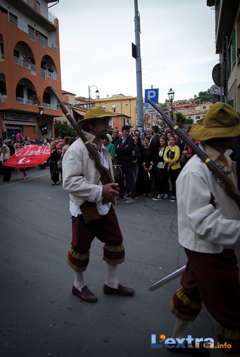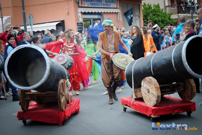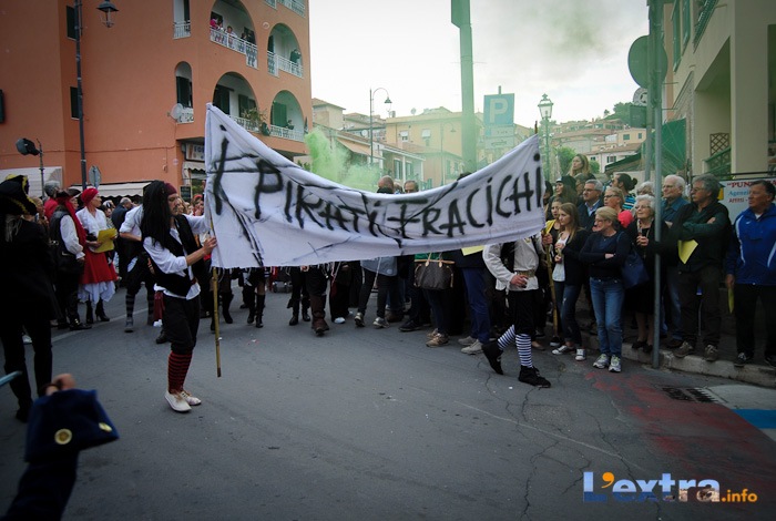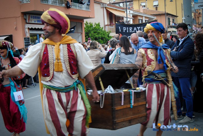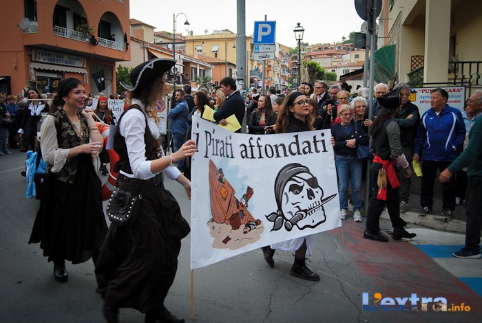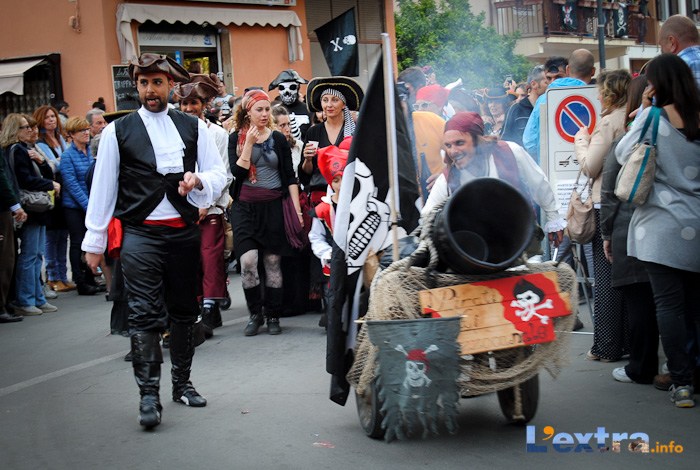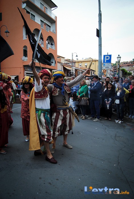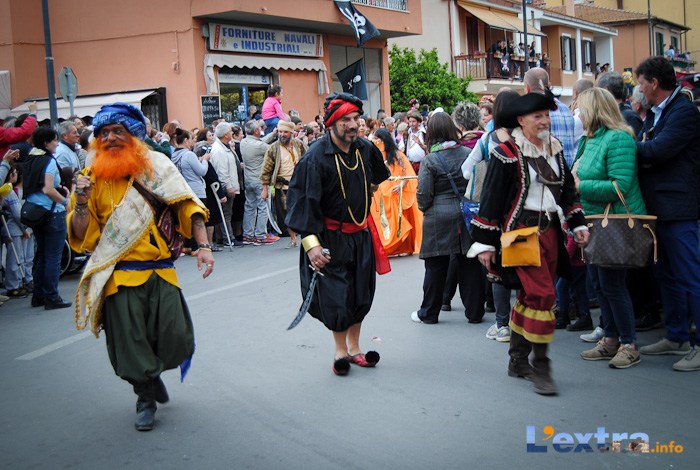 E ieri sera si è rinnovata la festa piratesca, a colpi di cannoni, moschetti e sciabole: tra magioni spagnole in estrema difesa dei forti e ottomani feroci pronti all’assalto, tra sirene e ninfee sino ad improbabili ciurme, un’invasione di visitatori ha riempito Porto Ercole in attesa prima della sfilata, quindi della spettacolare ricostruzione dello sbarco, infine della caccia al tesoro la cui premiazione, oggi, chiude la tre giorni dedicata ai pirati. Nelle foto e nei video il “racconto” di un pomeriggio di “ordinaria pirateria”.