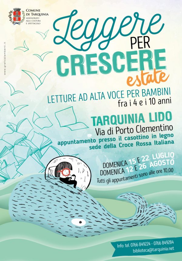 ”Leggere e Crescere Estate” vi aspetta quindi il 15 e 22 luglio, 12 e 26 agosto, l’appuntamento per tutti è in via di Porto Clementino,presso il casottino di legno attuale presidio della Croce Rossa.