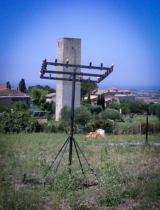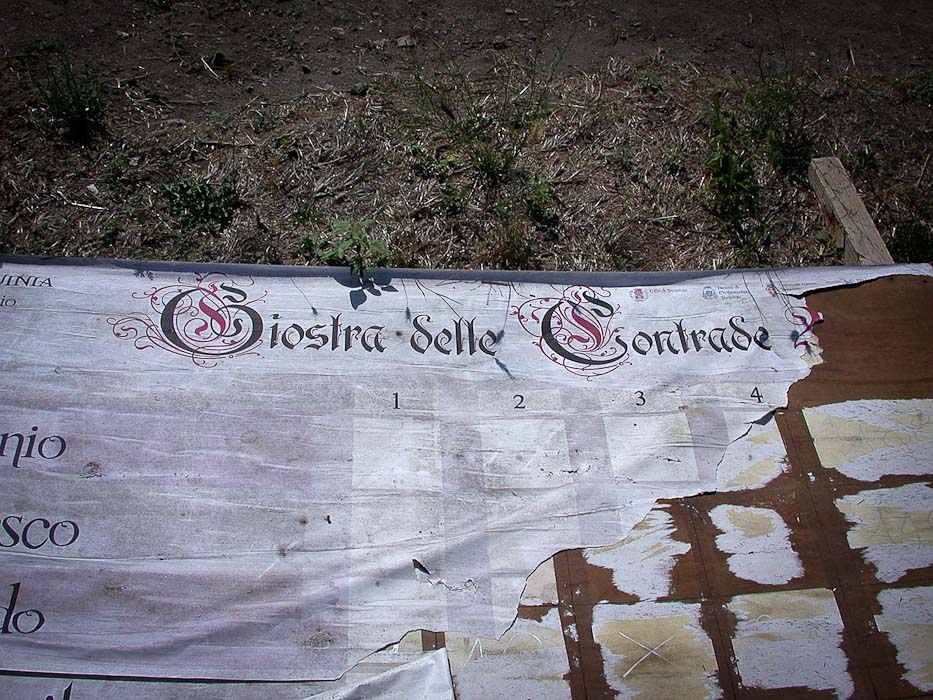 La mia abitazione si trova al civico n°4 di via San Giacomo. Questa confina su due lati con Campo Cialdi uno dei quali è costituito da un muro abbastanza basso da permettere la vista su una discreta porzione del suddetto campo oltre che sul panorama verso il mare. Va, perciò, da sé che, durante i preparativi per l’organizzazione della “Giostra delle Contrade”, abbia potuto assistere al gran lavorio per allestire lo spazio di gara dove si sarebbero cimentati i cavalieri “contradaioli”. Giorni e giorni di alacre lavoro per rassettare al meglio il “prato”, segnare la pista, renderla “a norma” (secondo le disposizioni di sicurezza dell’“U.N.I.R.E.”) e via via a sistemare tutto quel che c’era da sistemare. La manifestazione si è poi svolta, secondo programma, tra la fine di maggio e i primi giorni di giugno coinvolgendo, tra l’altro, piazze e vie della città con eventi collaterali.