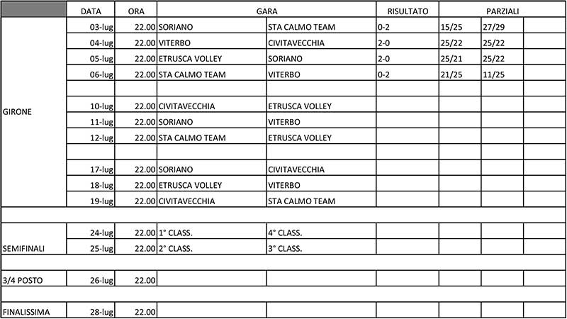 Una bella settimana di sport e divertimento, per chi era in campo ma anche per i molti che si sono semplicemente fermati a godersi lo spettacolo: la prima settimana del Memorial “Marco Perugini”, allo stabilimento balneare La Pineta, a Tarquinia Lido, ha riportato in uno degli scenari storici del volley estivo tarquiniese entusiasmo e passione. Il tutto nel ricordo di un ragazzo cui la passione per la pallavolo animava la vita, Marco Perugini.
