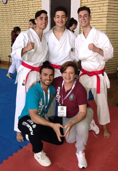 La squadra maschile di Kata del Lazio (categoria Cadetti) formata da Mirko Barreca, Leonardo Diana e Manuel Macale sale sul gradino più alto del podio battendo in finale per cinque a zero il Portogallo dell’Askksa, un successo netto, grazie al quale arriva la medaglia d’oro. Non va altrettanto bene alla squadra di kata femminile – formata da Giorgia Barella, Eva Ferracuti e Sofia Garofoli – che cede il passo in finale contro le ragazze del Montenegro, amareggiate, ma comunque felici per il brillante secondo posto con il quale si aggiudicano il titolo di Vice Campioni d’Europa. Gli atleti dopo una lunga e dura preparazione, centrano gli obbiettivi internazionali. Continua così l’ottimo lavoro svolto nella Fijlkam in preparazione della fase olimpica; un applauso particolare va esteso ai responsabili della spedizione, Cinzia Colaiacomo, Lele Troiano e Andrea Lentini.