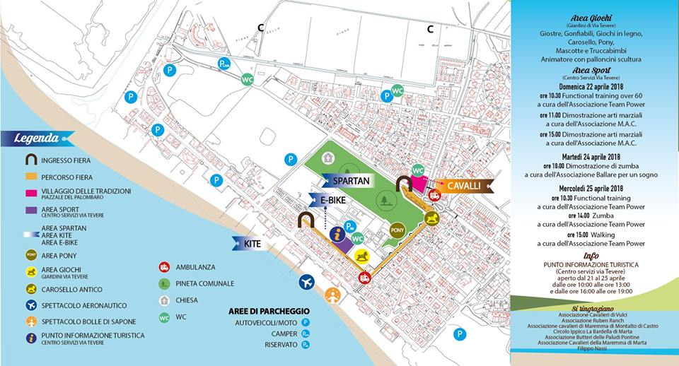 Dalle ore 7 del 21 aprile alle ore 24 del 25 aprile verrà disposta la segnaletica integrativa, oltre quanto disposto nelle limitazioni e divieti sopra elencati: via Ginepri-Sette Camini Via della Pineta divieto di accesso da via Torre Marina eccetto i residenti; via Torre Marinaintersezione via Pianosa verrà rinforzata la segnaletica già presente con direzioni obbligatorie verso via Pianosa anche con la presenza delle transenne; via Sette camini e via Pineta all’uscita, direzione obbligatoria verso via Pianosa; via Montecristo all’uscita, direzione obbligatoria verso via Pianosa; via Pianosa (altezza civico 11) divieto di transito direzione Torre Marina e divieto fermata ambo i lati; via Pianosa intersezione con Via Elba direzione obbligatoria verso via Giannutri con la cartellonistica indicante Roma – Grosseto – Viterbo; via Giannutri divieto fermata e sosta e senso unico direzione via Tre Cancelli; via Elba intersezione via Del Giglio divieto di accesso eccetto residenti per i veicoli che transitano in direzione via Tre Cancelli; Strada Litoranea accesso su via Tre Cancelli interdizione alla circolazione eccetto i residenti. Parcheggio ex Pineta Zanette, area a fondo naturale: riservato ai veicoli degli espositori.