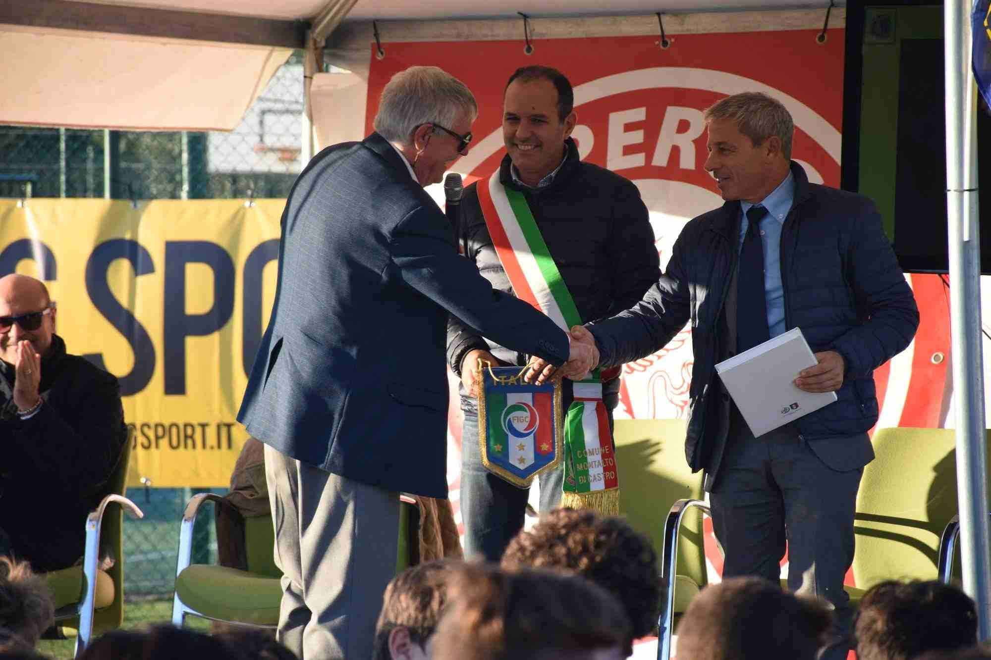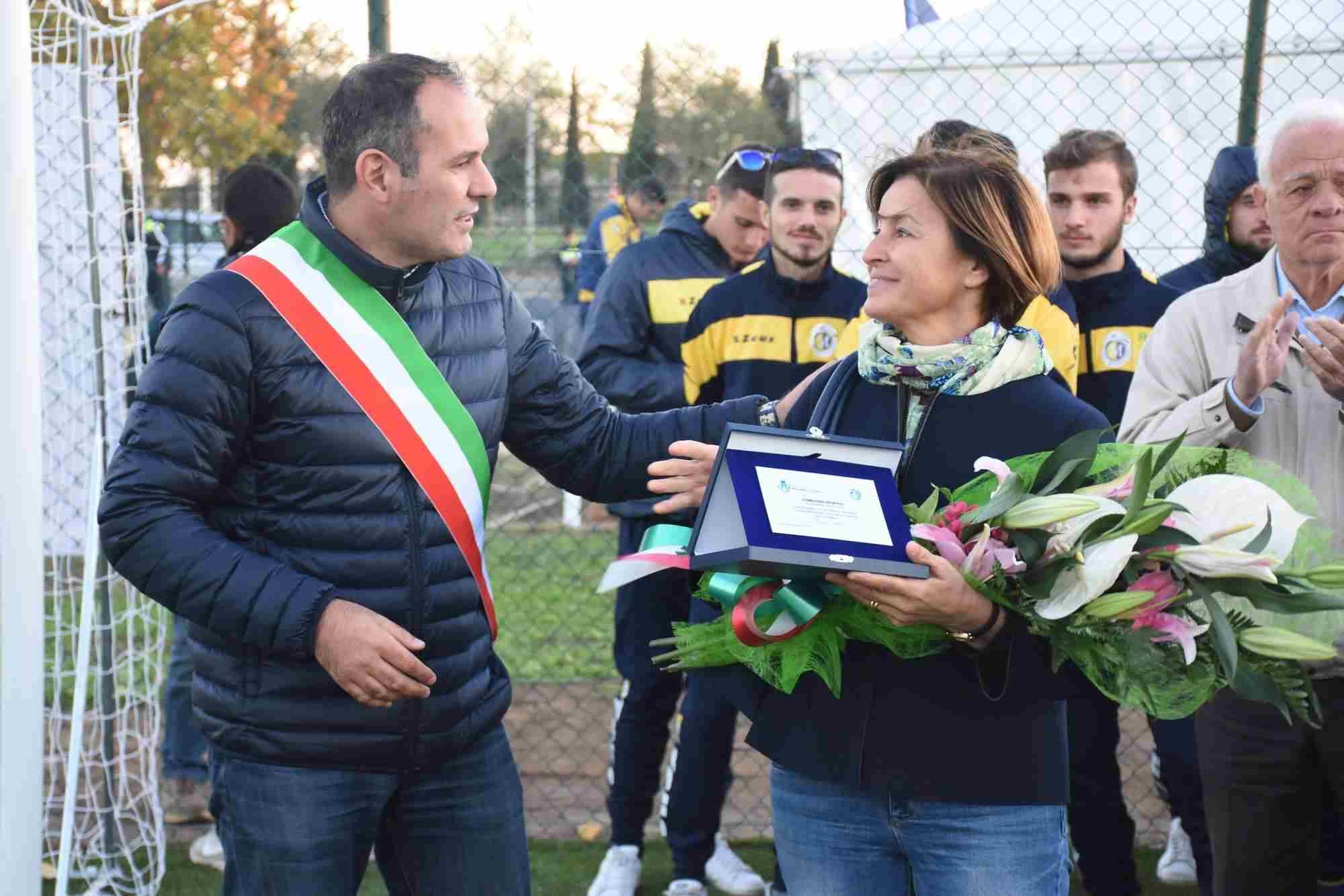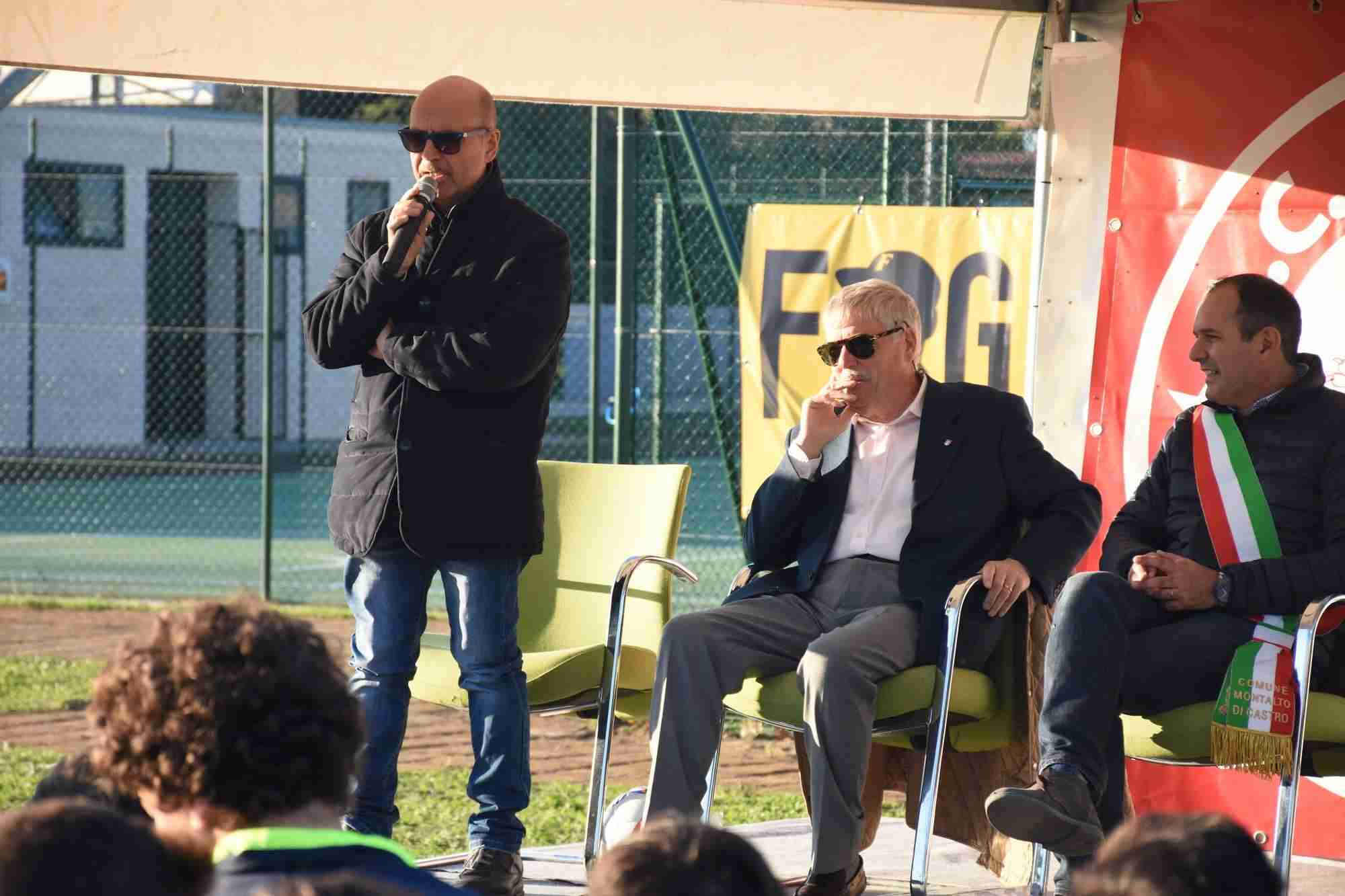 Prima della cerimonia d’intitolazione, i protagonisti sono stati ragazzi e atleti della società gialloblu, che ieri ha ufficialmente presentato tutte le sue squadre, dalla prima, affidata a Mister Stefano Pera e attualmente in testa al campionato di Prima Categoria, alla scuola calcio, passando per le categorie agonistiche giovanili. Presenti al “battesimo” stagionale del Montalto anche le autorità federali, dal consigliere regionale FIGC Renzo Lucarini al presidente federale viterbese Ermanno Todini, oltre che Mauro Lucarini, direttore generale del Perugia Calcio – squadra oggi in serie B – e anima e responsabile del Progetto Academy della società del Grifone, cui partecipa con entusiasmo anche il Montalto Calcio.
