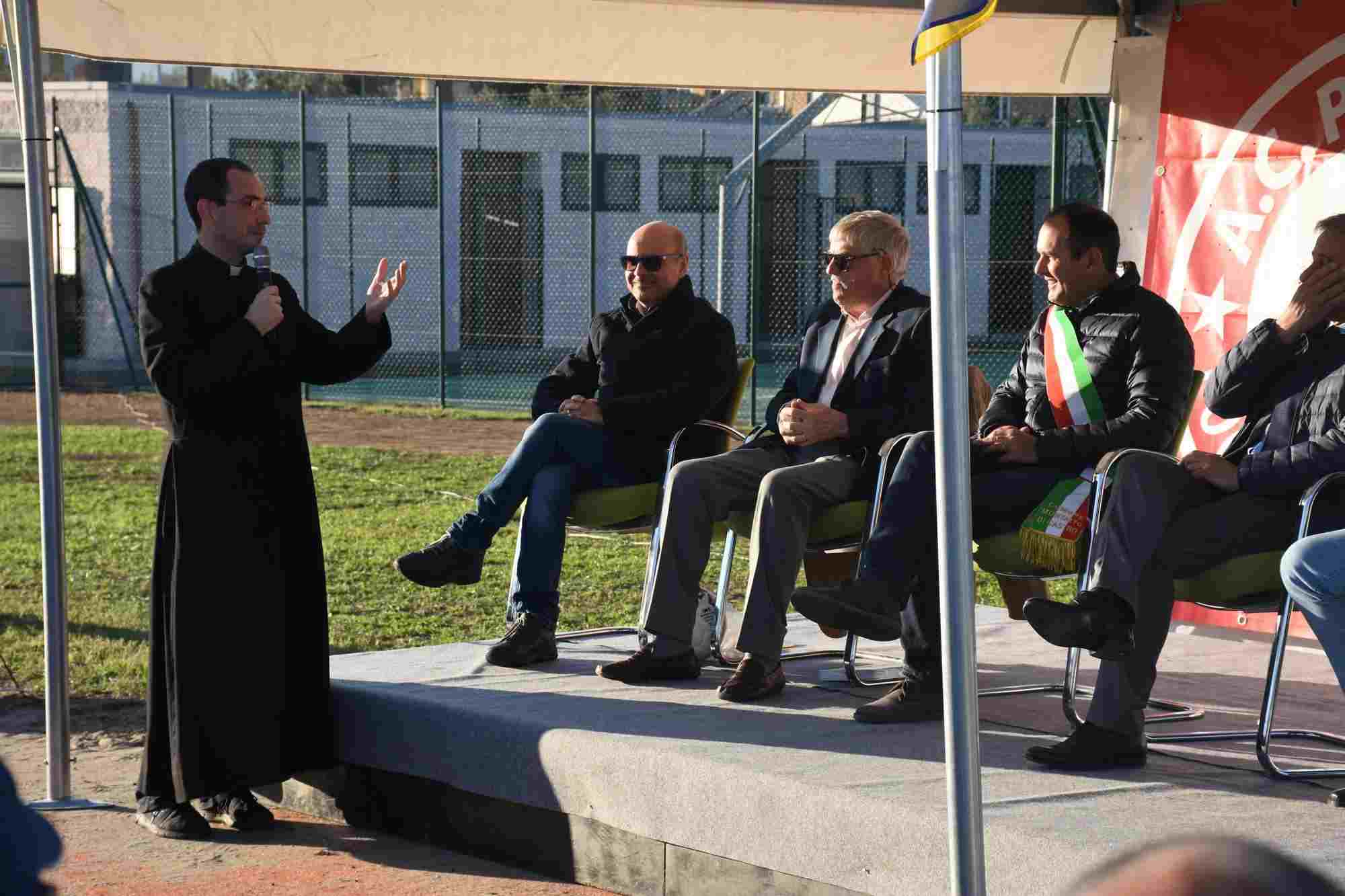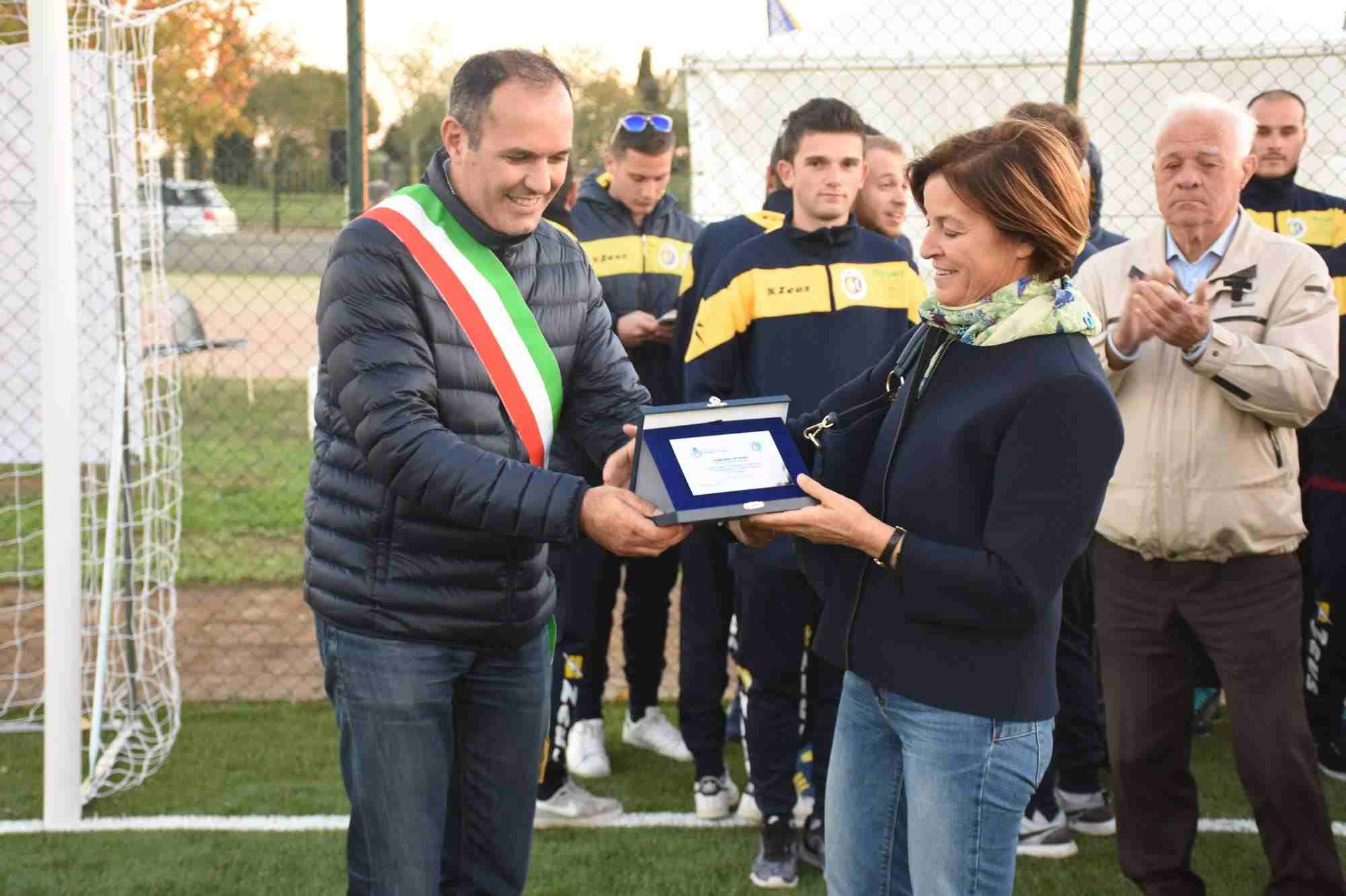 L’attenzione di tutti, a fine serata, si è poi spostata sul campo, con la consegna da parte del Sindaco Sergio Caci di una targa alla famiglia di Franco Bruni, la benedizione dell’impianto da parte di Padre Giuseppe e l’intitolazione dello stesso. “Vedo qui attorno tanti amici – le parole della signora Bruni – e sono veramente orgogliosa del pensiero che, in questa giornata, si è scelto di rivolgere a Franco”.