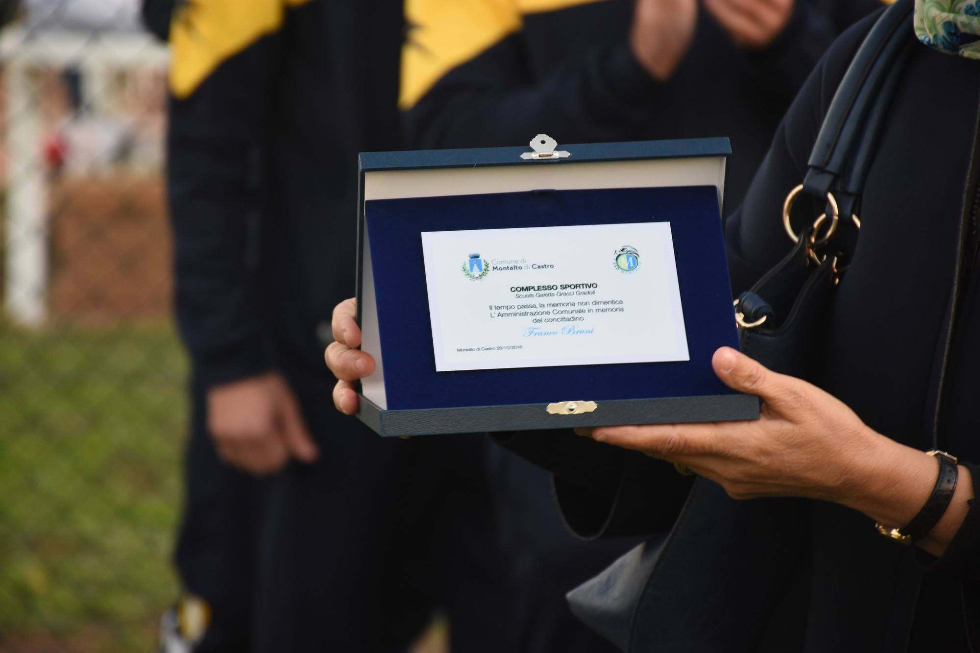 Un pomeriggio all’insegna dello sport e dedicato ai giovani, ma soprattutto una giornata in ricordo di un montaltese: questo quanto vissuto ieri a Montalto di Castro, dove si è tenuta la cerimonia di inaugurazione ed intitolazione del campetto sportivo recentemente restaurato dietro la scuola media alla memoria di Franco Bruni, scomparso nel 2002 proprio praticando sport su quei campi.