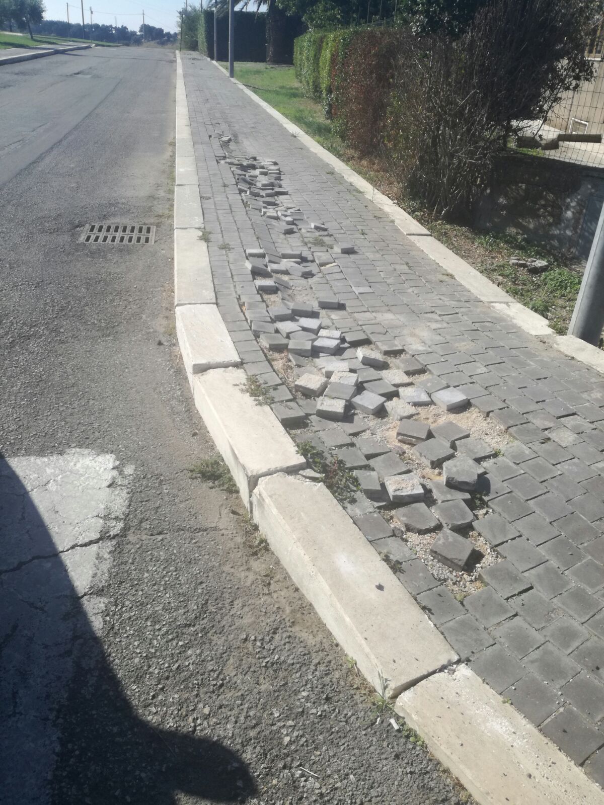 Tuttavia, se spostiamo di poco lo sguardo, ecco che appare il degrado: accanto al prato del Piazzale dell’Officina troviamo un marciapiede distrutto e pericoloso, oppure, nel terreno vicino il nuovo marciapiede di Via delle Eriche, che costeggia l’altrettanto nuovo giardino, ci sono ancora, abbandonati, i resti dei materiali usati per la costruzione (che, tra l’altro, causano inquinamento del terreno, oltre ad un esempio di sciatteria, brutto da vedere).