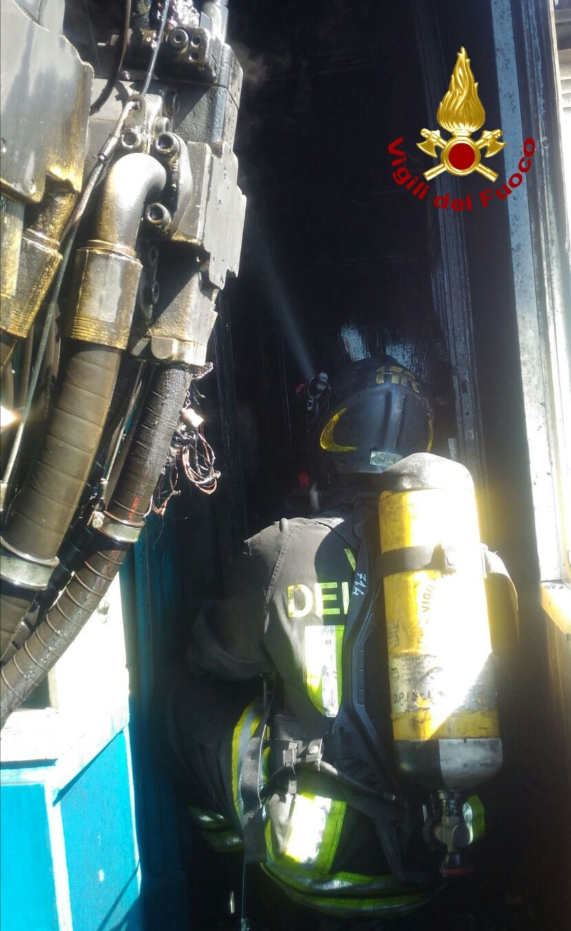 Alle ore 08 di stamani, 21 aprile 2018, i Vigili del Fuoco di Civitavecchia sono intervenuti presso la banchina 23 all’interno del porto di Civitavecchia, per l’incendio di un carro gru gommato. Durante le manovre di scarico della merce, si sono sviluppate fiamme all’interno del vano motore. I VVF intervenuti con autopompa, autobotte, autoscala e motobarca Raf, hanno estinto le fiamme e messo in sicurezza l’intera area. A scopo precauzionale è stata fatta disormeggiare dalla banchina interessata dall’evento, la nave dalla quale stavano scaricando la merce (cippato) con l’ausilio dei rimorchiatori. L’opera dei VVF ha impedito alle fiamme di propagarsi alla nave suddetta ed al materiale (cippato) già scaricato e stipato provvisoriamente nelle vicinanze della gru. Nessun ferito. Sul posto anche: Guardia Costiera; Carabinieri Forestali e Polizia di Stato. Le operazioni di bonifica e messa in sicurezza si sono protratte fino alle ore 10,45 circa.