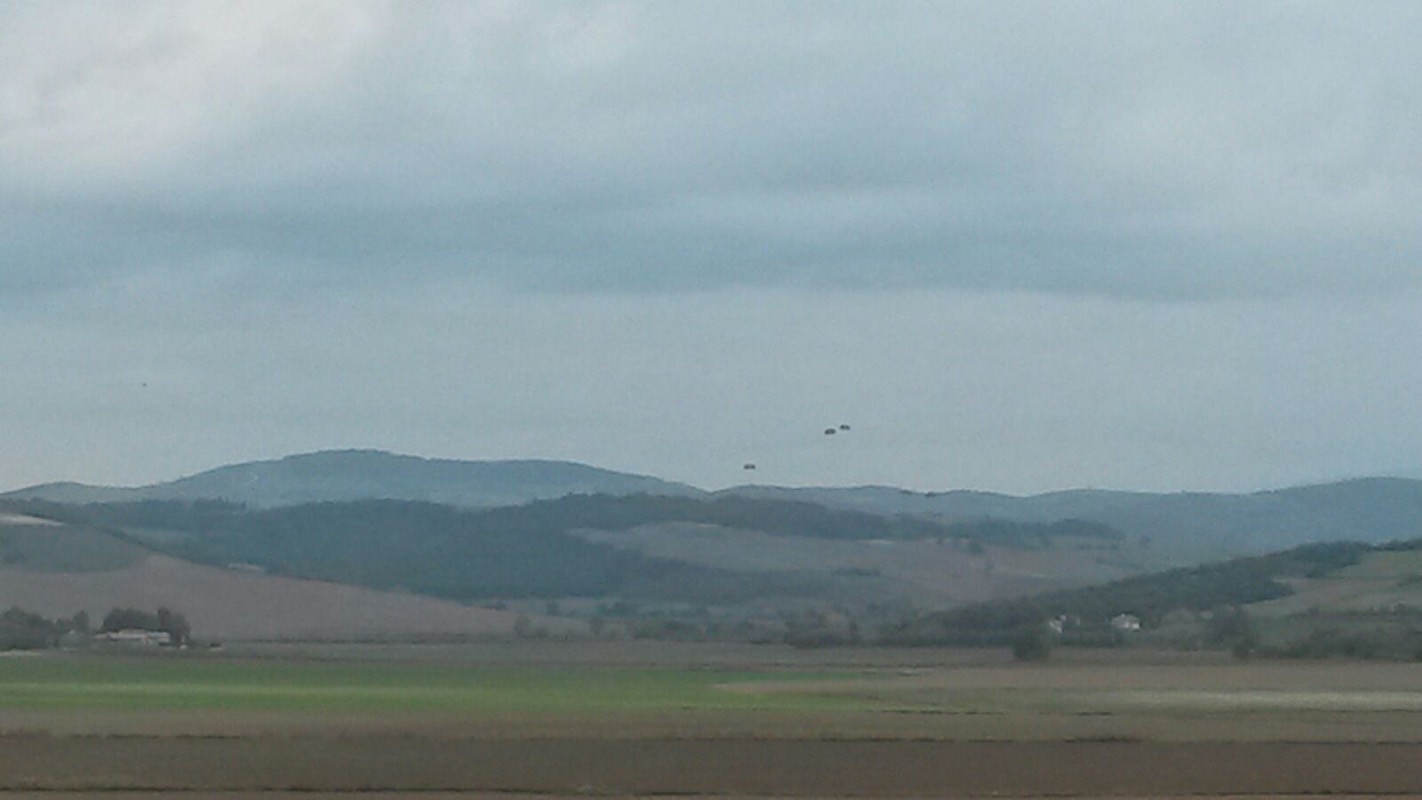Curiosa attenzione quella catturata stamani, in zona Farnesiana, dalla folta presenza di paracadutisti e mezzi militari. Nel corso della mattinata residenti e visitatori hanno notato un particolare traffico nel tratto di cielo sopra l’area, ed alcuni hanno anche provveduto a fotografarlo: a corredo dell’articolo le immagini inviateci dall’amico Piero Compagnucci.
