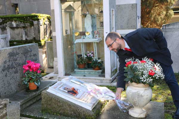 La pila dei giornali ogni mattina sotto il braccio, un lavoro, nella politica, sodo, disinteressato e senza compromessi. Sono passati quasi 5 anni dalla morte di Oreste Massolo, una personalità nella storia politica della Tuscia. Questa mattina Andrea Egidi, candidato Pd alle Regionali, ha voluto rendergli omaggio, accompagnato dalla famiglia di Massolo. Presente anche l’assessore comunale Sonia Perà.