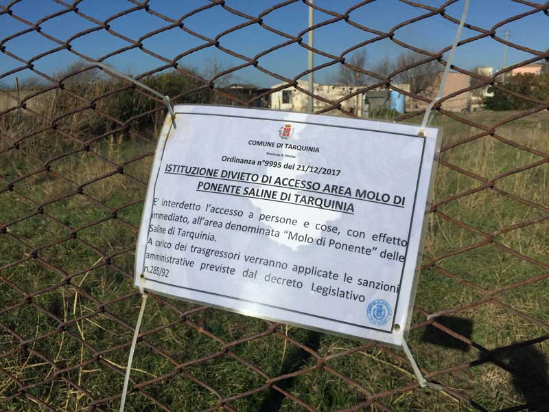 Dopo le segnalazioni di Alessio Gambetti e del gruppo Tarquinia nel Cuore, che da mesi evidenziano le condizioni via via più critiche della struttura ed i rischi per l’incolumità di chi vi transita, il rimedio posto in essere dal sindaco Mencarini è stato emettere, il 20 dicembre scorso, un’ordinanza di interdizione per l’area. Nella pratica, sono apparsi presso il molo dei pali di legno – a cui, nei giorni scorsi, sono state aggiunti dei cordoni – per creare una barriera, con alcuni cartelli che informano sull’esistenza dell’ordinanza.