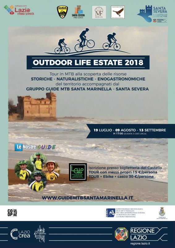Il 19 luglio, prende il via, il primo dei tre appuntamenti per scoprire le bellezze del territorio circostante il castello…ma tutto in sella alla Mountain bike per godere appieno dei colori, dei profumi, e del panorama. L’iniziativa a cura del Gruppo guide in MTB di Santa Marinella, in collaborazione con Regione Lazio, LAZIOcrea, Mibact, Comune di Santa Marinella e Coopculture, organizza un interessante percorsoalla scoperta delle risorse storiche, naturalistiche e enogastronomiche del territorio. Appuntamento alle 17 al castello, e attraverso la zona archeologica degli scavi adiacenti il castello si prosegue in direzione dell’ oasi naturalistica di Macchiatonda dove un ranger spiegherà brevemente le peculiarità del luogo percorrendo un sentiero sulle dune di sabbia. Da Macchiatonda si passa all’interno dell’azienda agricola Morani, con degustazione di alcuni prodotti bio direttamente nel luogo di produzione e attraversando la strada statale ss1 Aurelia si procede in direzione Santa Severa nord tramite un percorso ricavato ai confini di campi a semina grano e fieno.