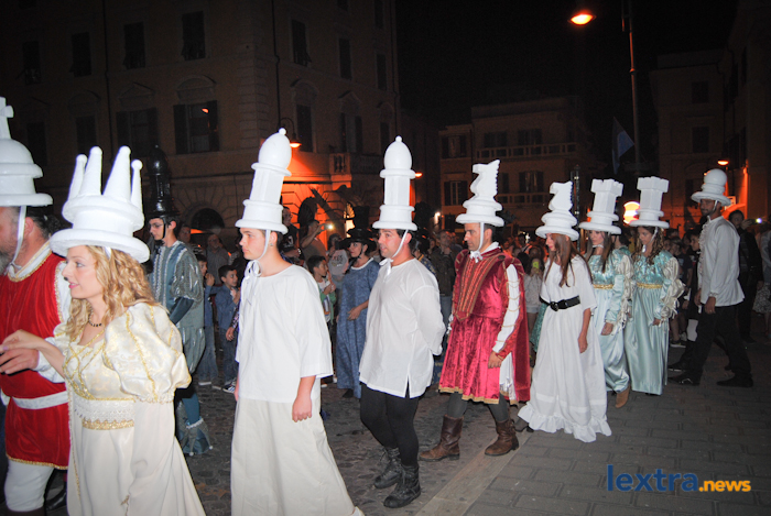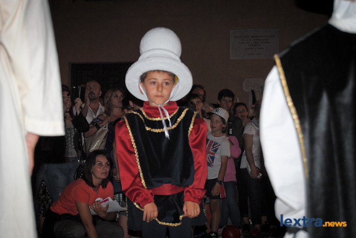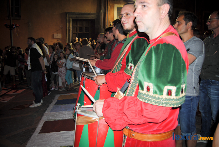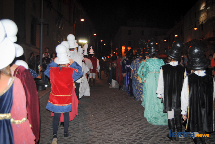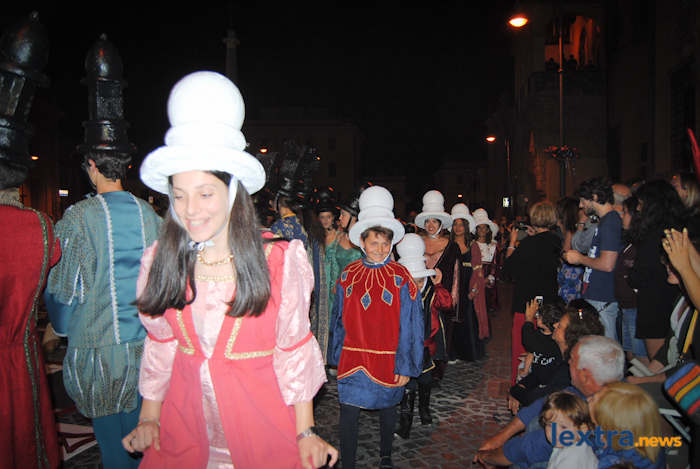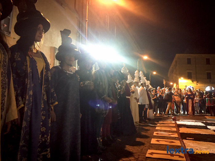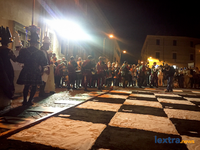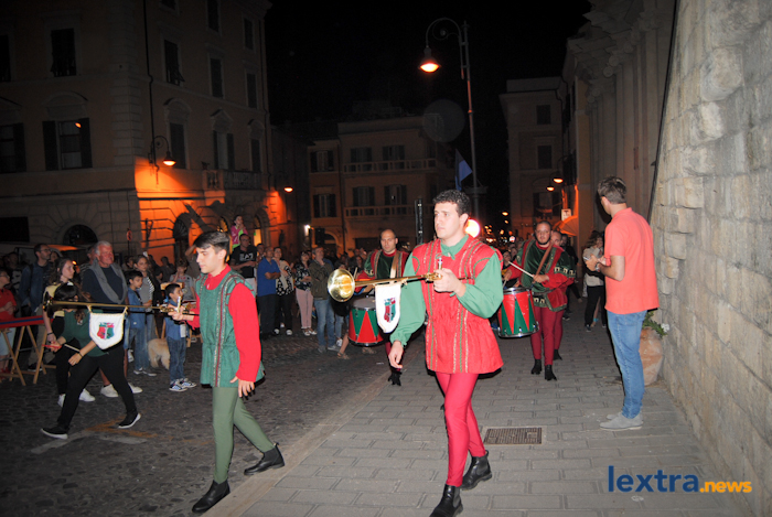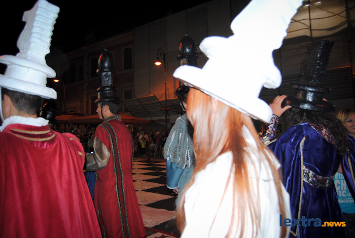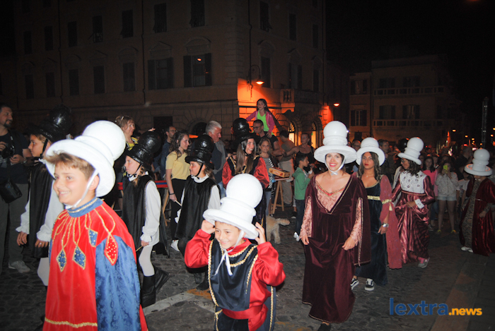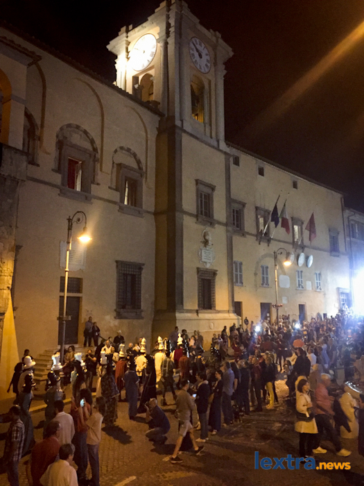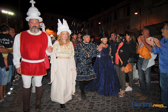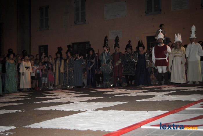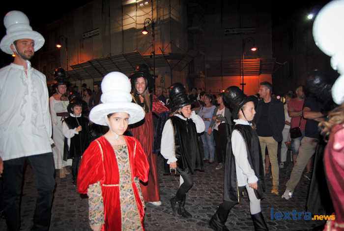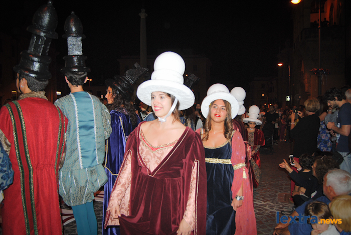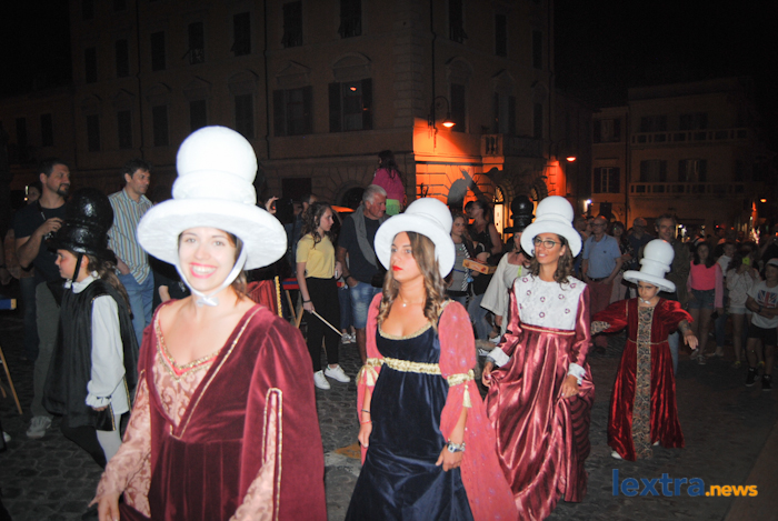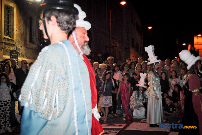 Il weekend tarquiniese della Giostra delle Contrade prosegue, in questo sabato sera, con l’inedita scacchiera vivente: mentre cresce l’attesa per il Palio di domani, si sono sfidati bianchi e neri sulla scacchiera di piazza Matteotti tra la curiosità dei presenti.