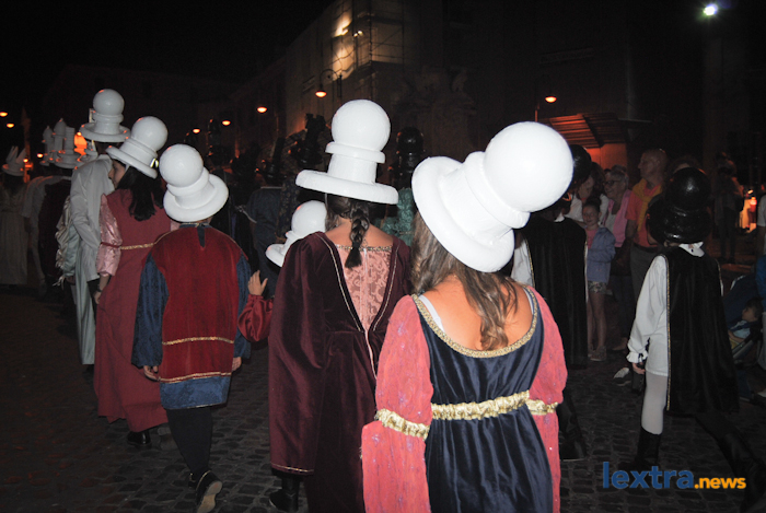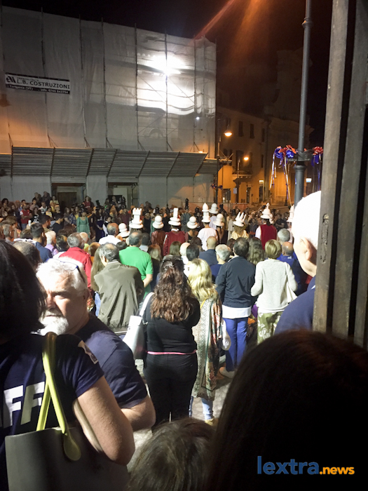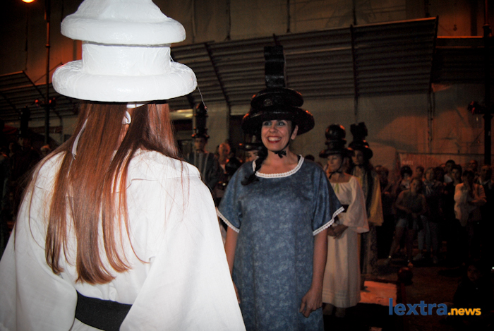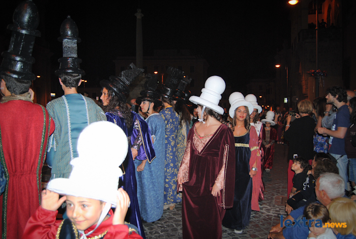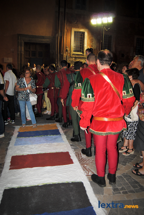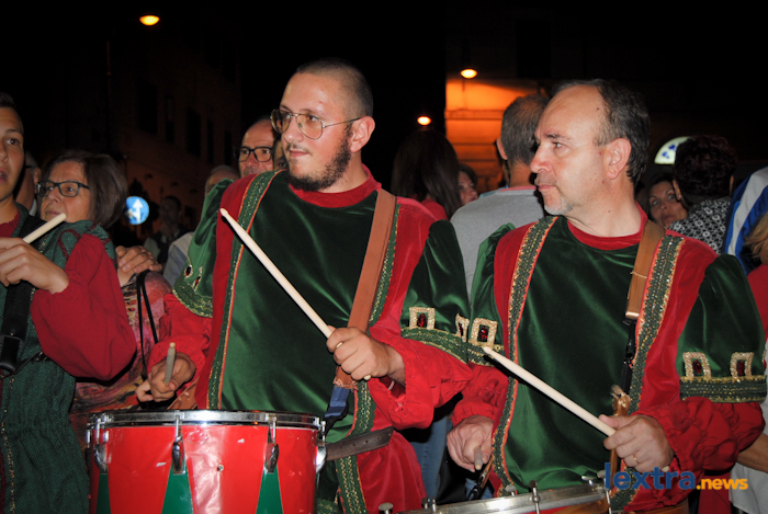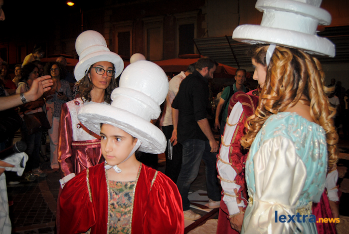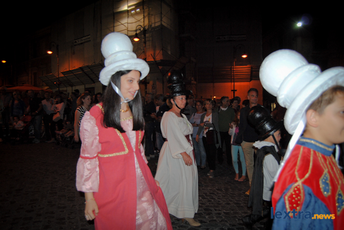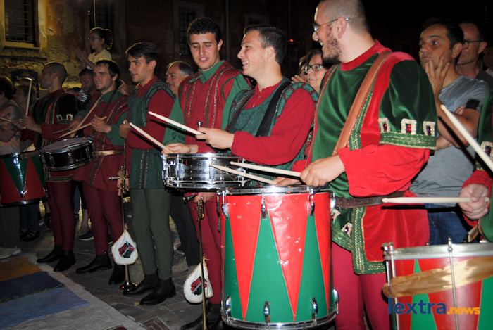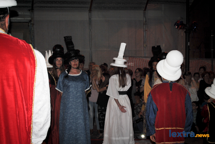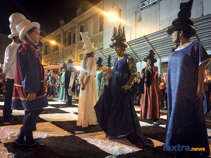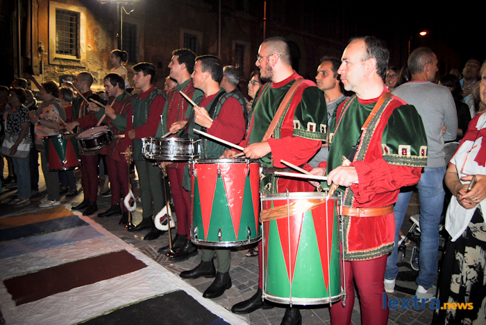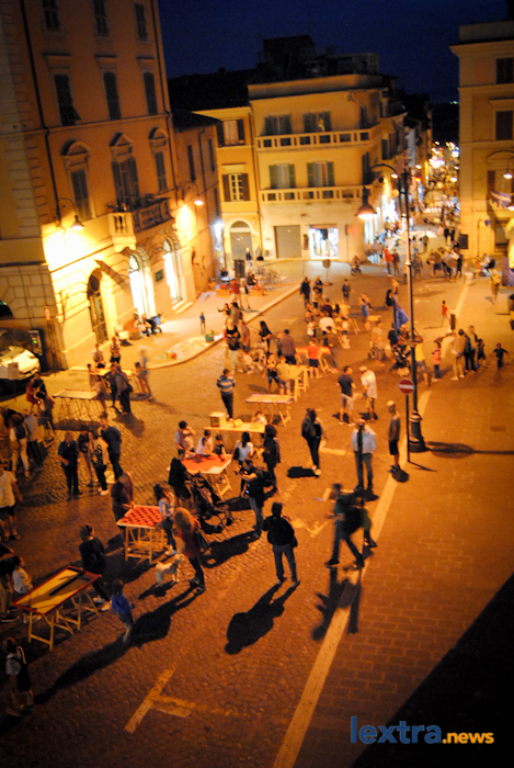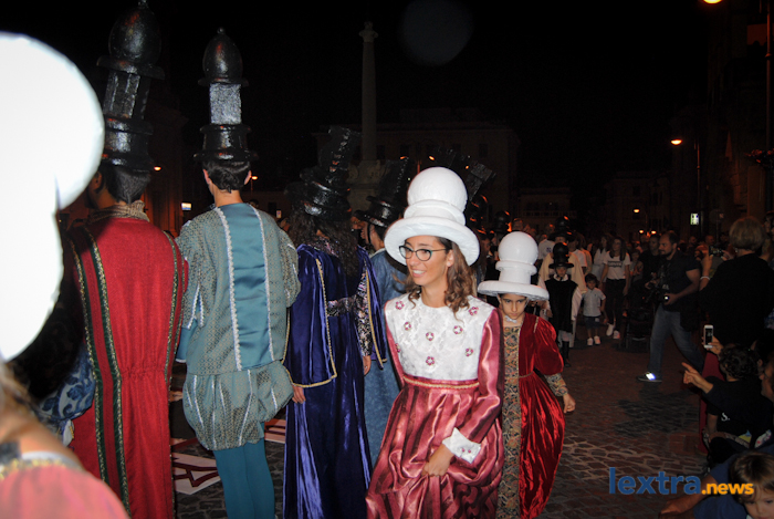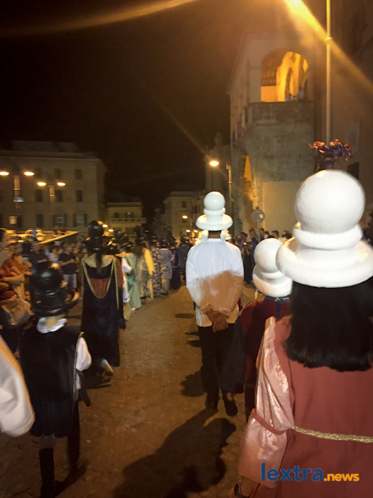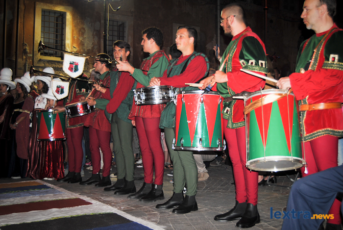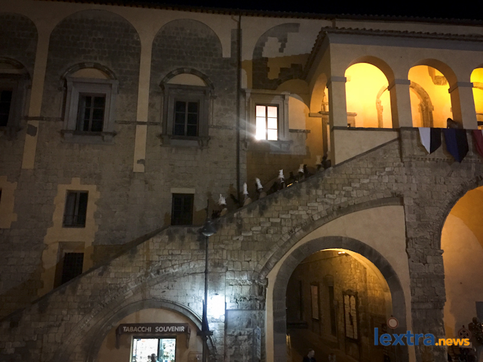 Il weekend tarquiniese della Giostra delle Contrade prosegue, in questo sabato sera, con l’inedita scacchiera vivente: mentre cresce l’attesa per il Palio di domani, si sono sfidati bianchi e neri sulla scacchiera di piazza Matteotti tra la curiosità dei presenti.
